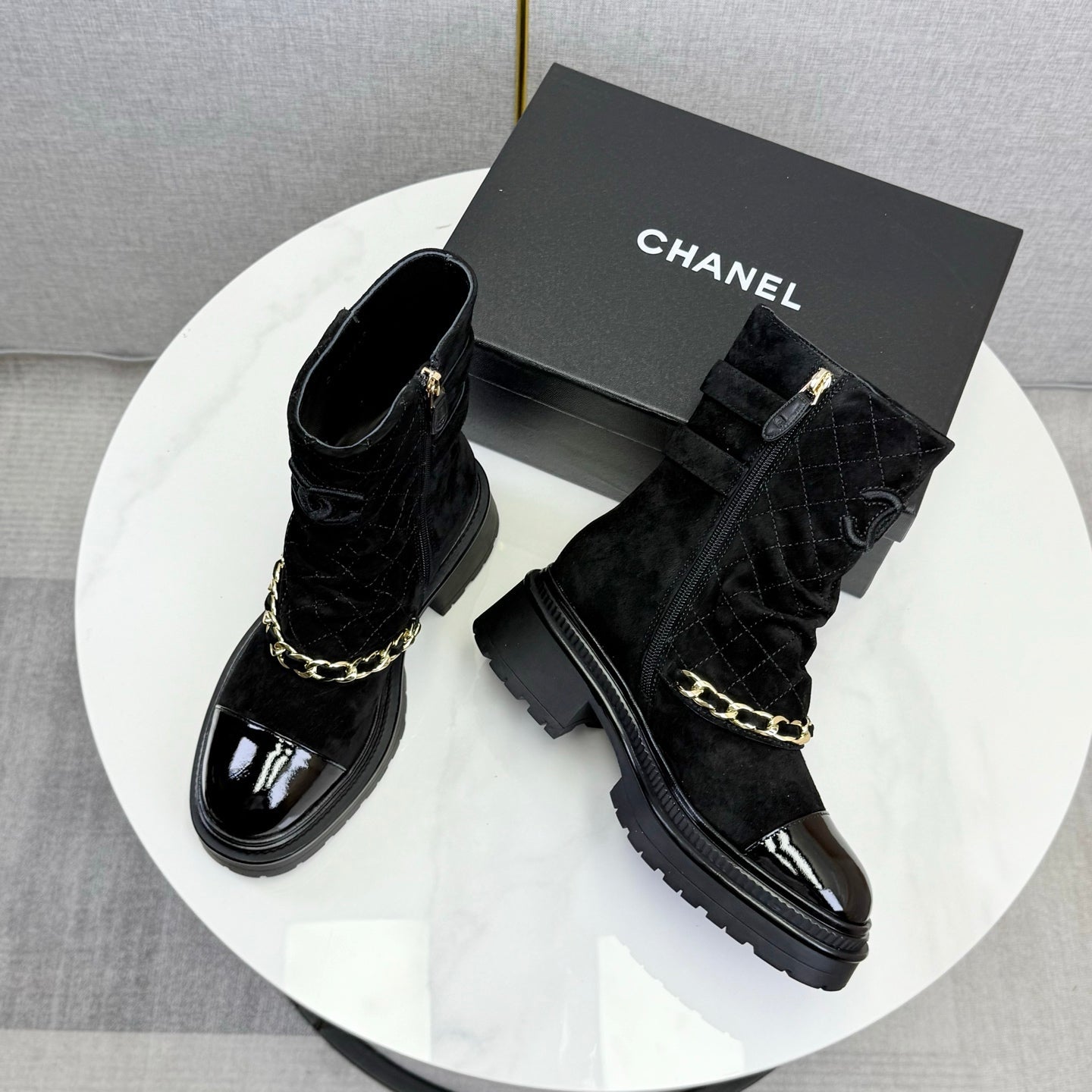 CC 25B AW Ankle Boots Black Quited Suede Patent Leather 541070 GHW