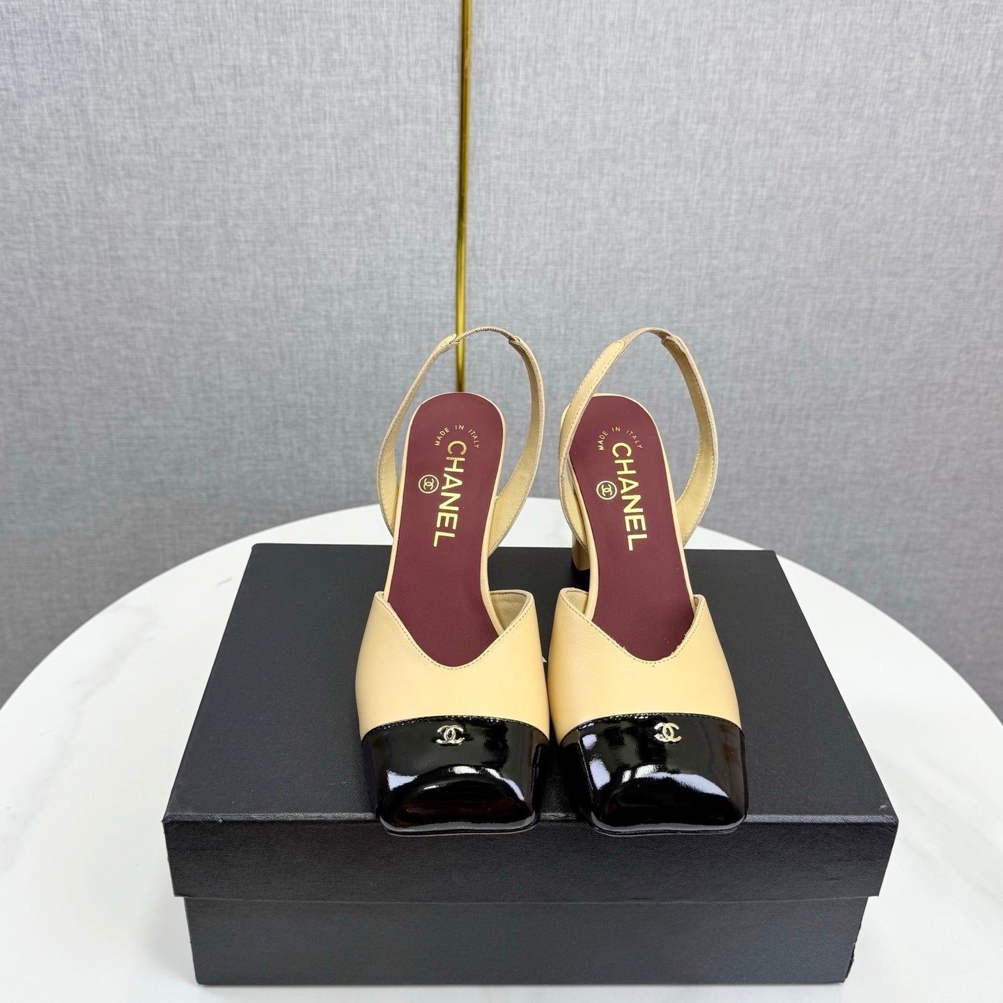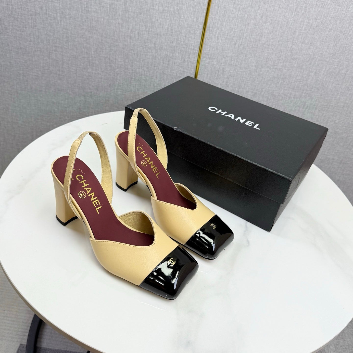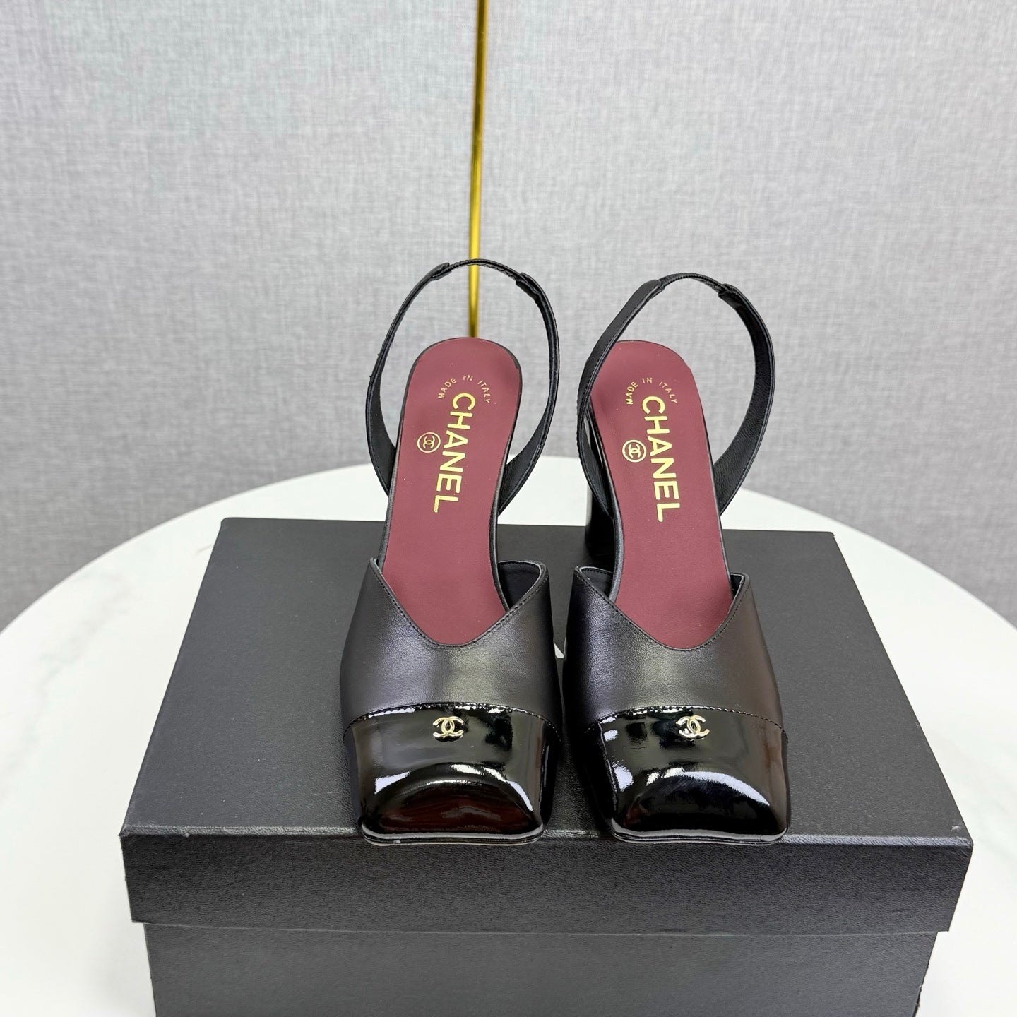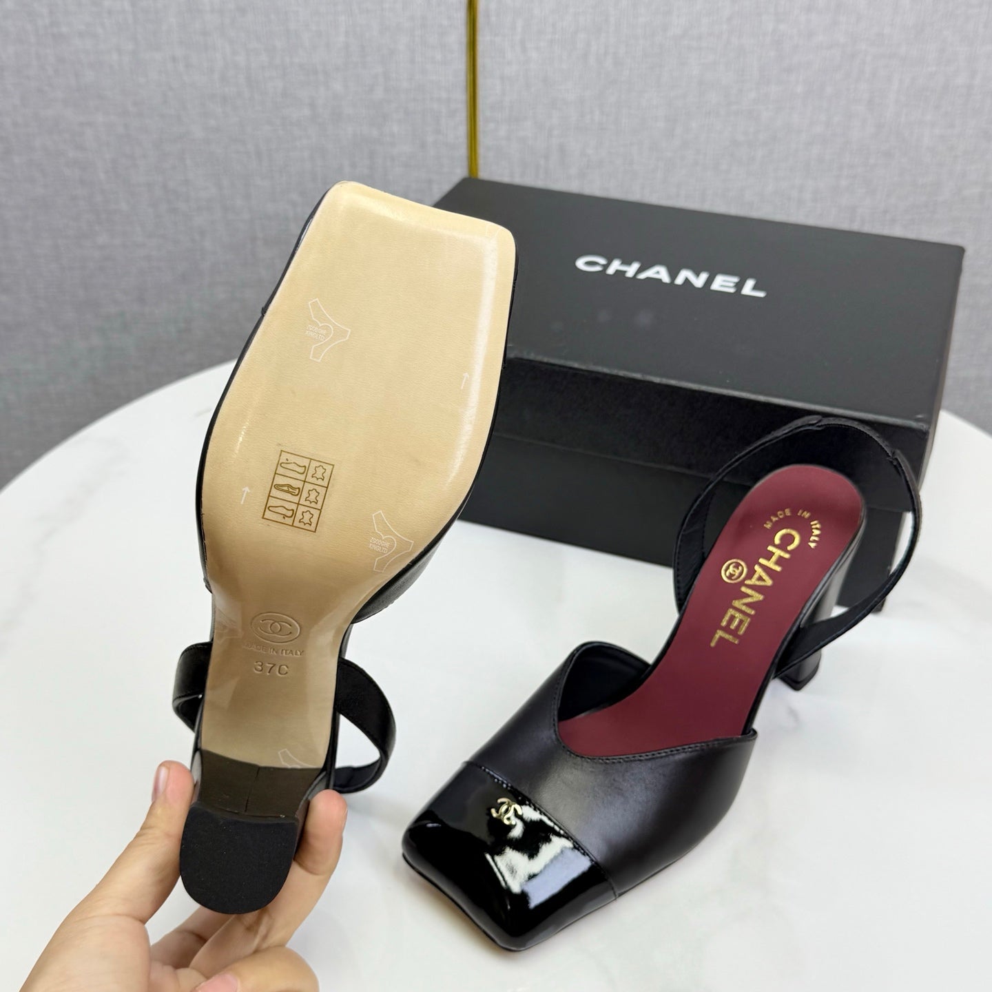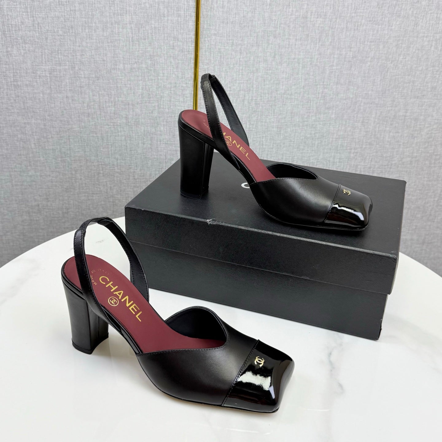 CC 25FW Square Toe Slingback Black White Patent Leather 541133
