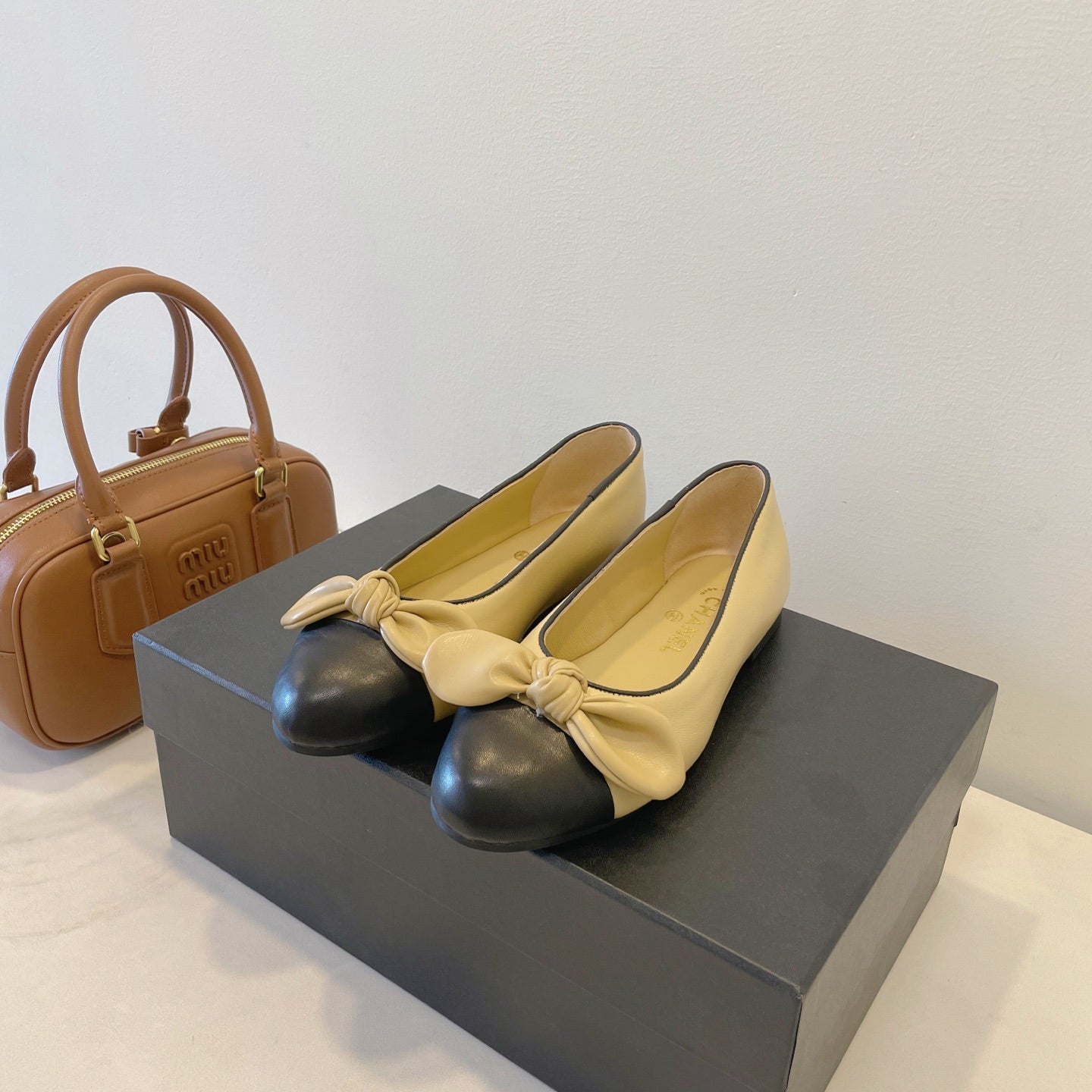 CC Classic Ballet Flats Beige Black Lambskin 282276