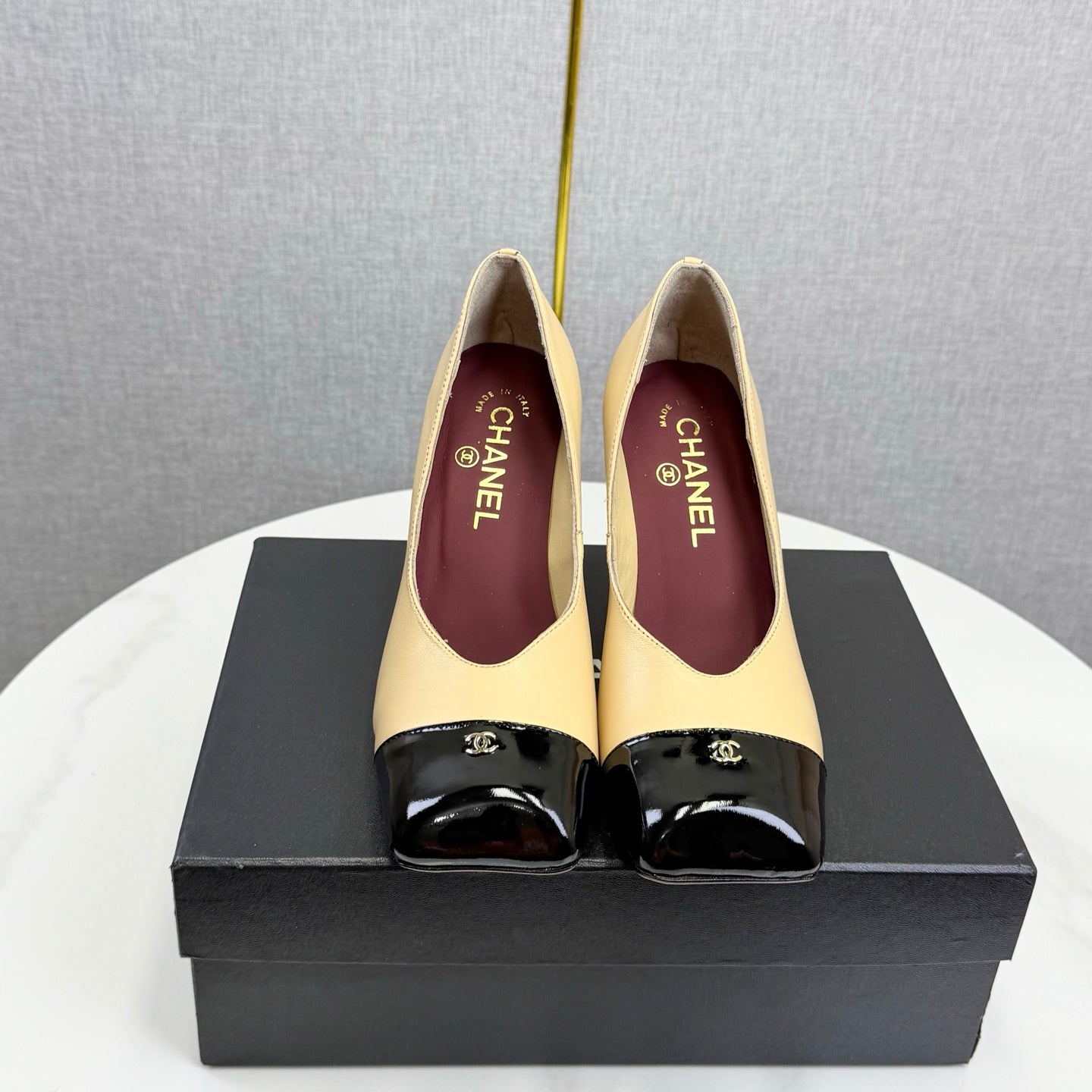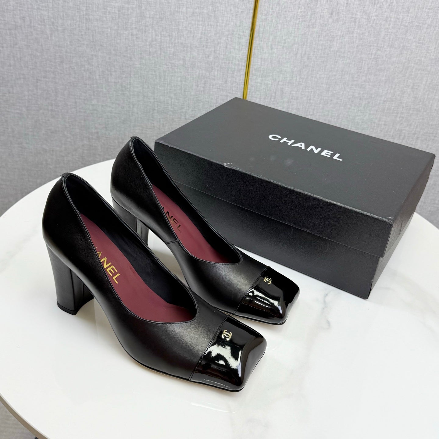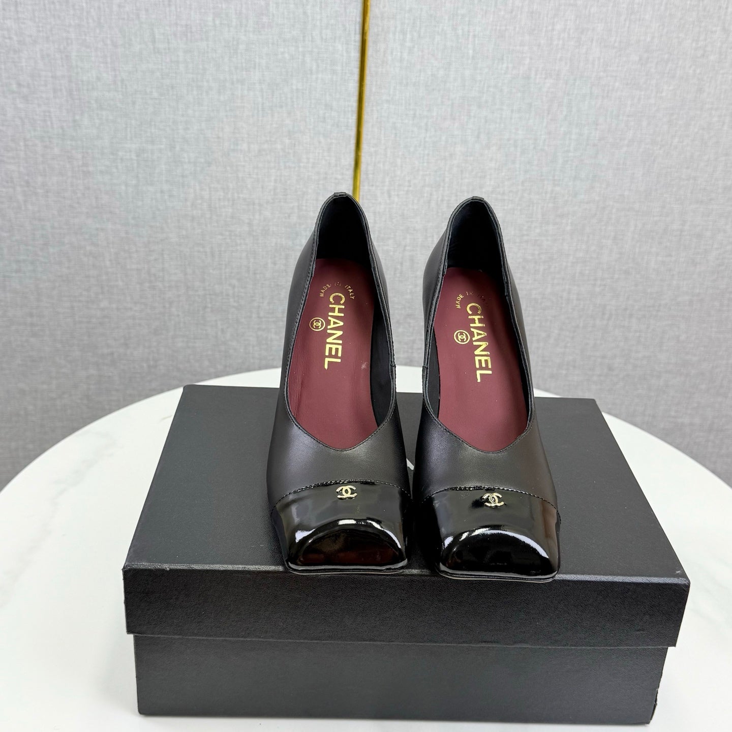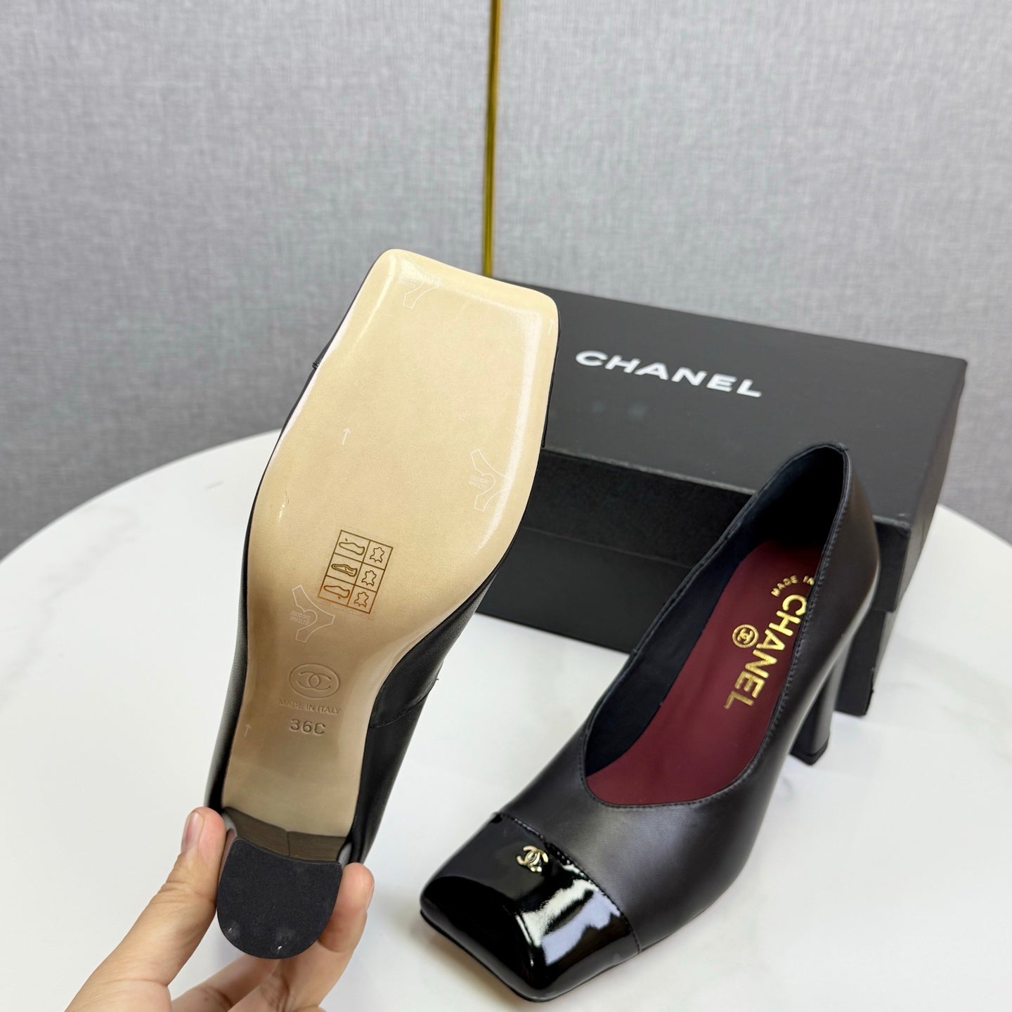 CC Square Toe Slingback Black Beige Sheepskin Patent Leather 541129