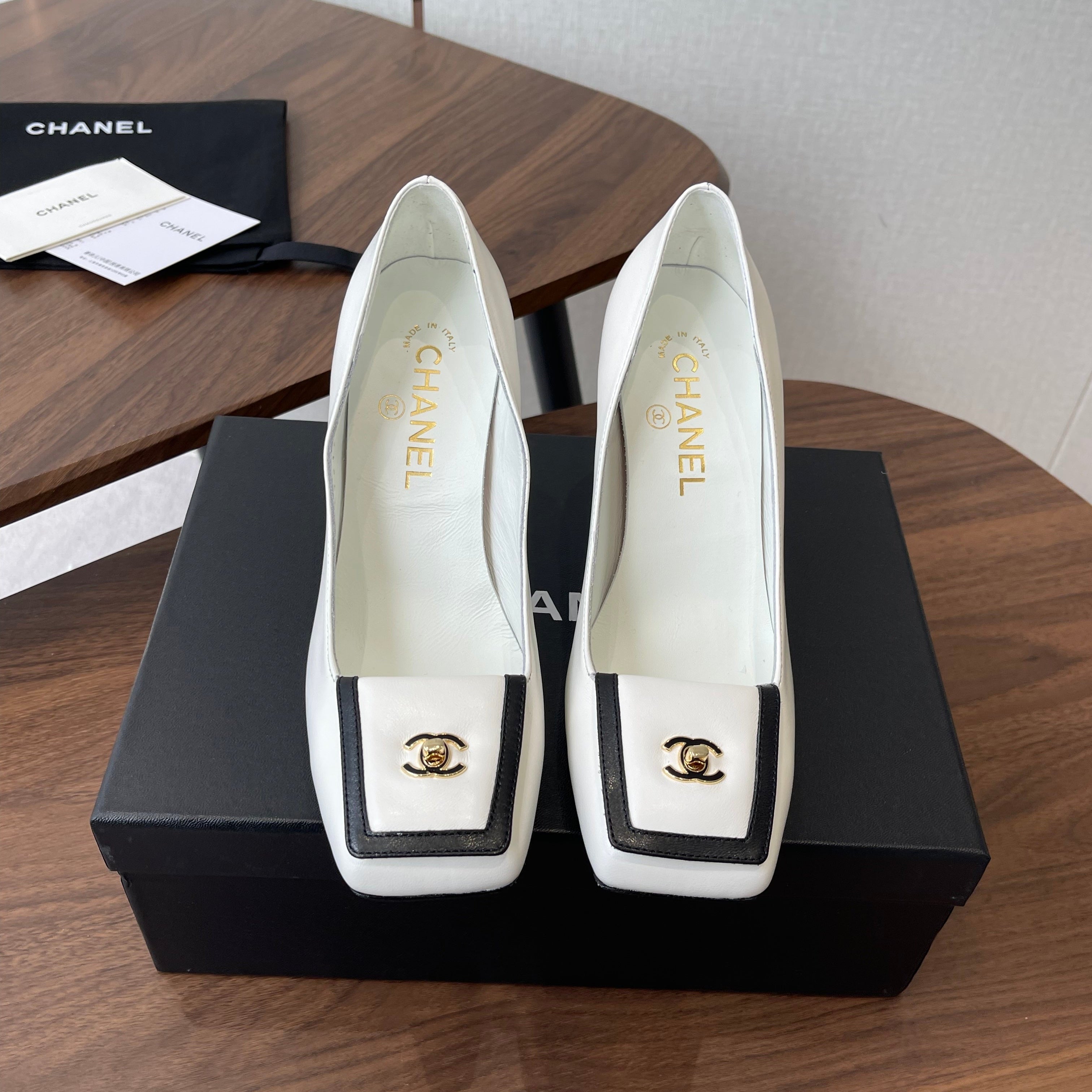 CC Square-Toe Pumps 65mm Black Sheepskin 427015