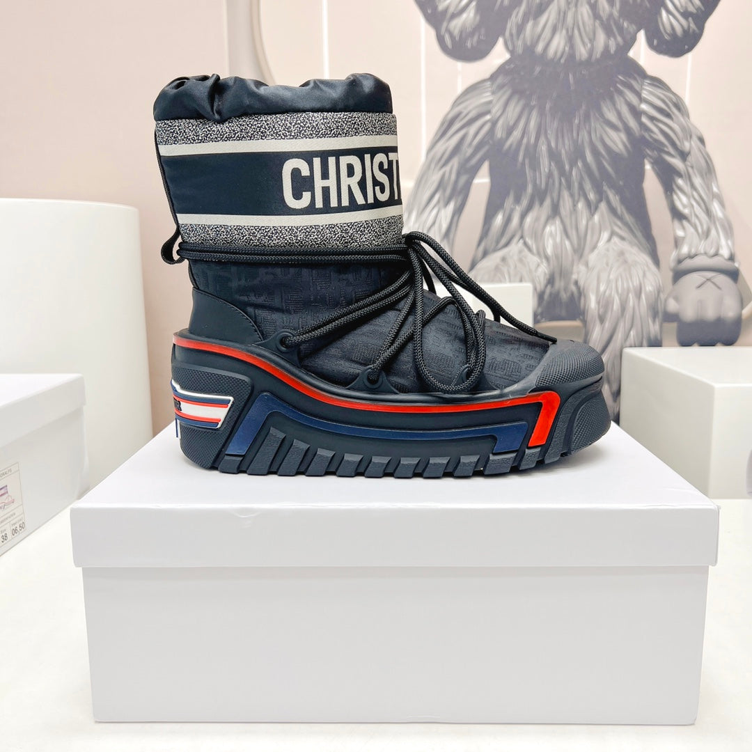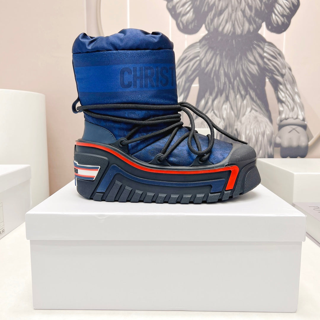 CD Snow Ankle Boots Dark Blue Cowhide Nylon Fabric 539660