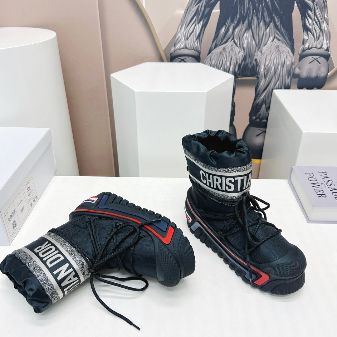 CD Snow Ankle Boots Black Red Cowhide Nylon Fabric 539658
