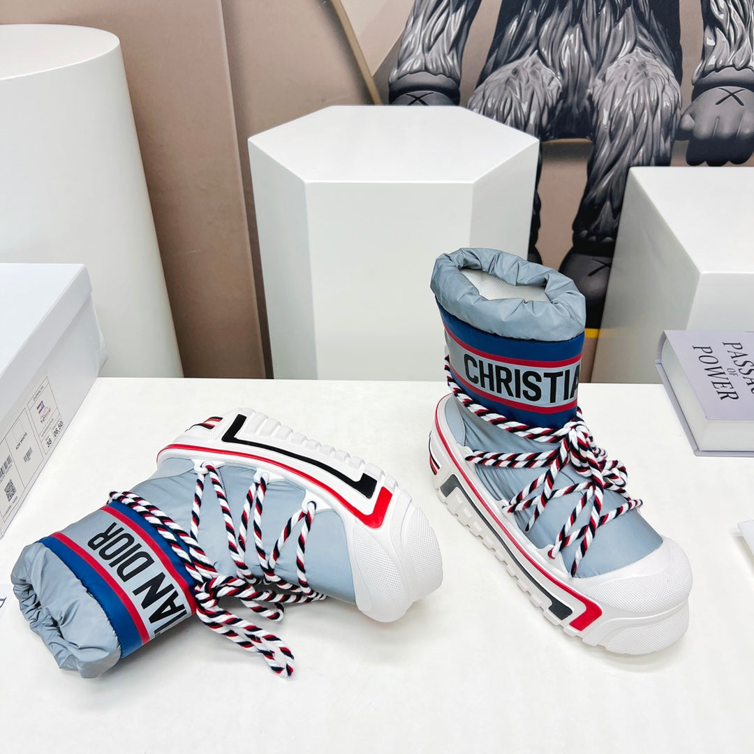 CD Snow Ankle Boots Light Blue Cowhide Nylon Fabric 539659