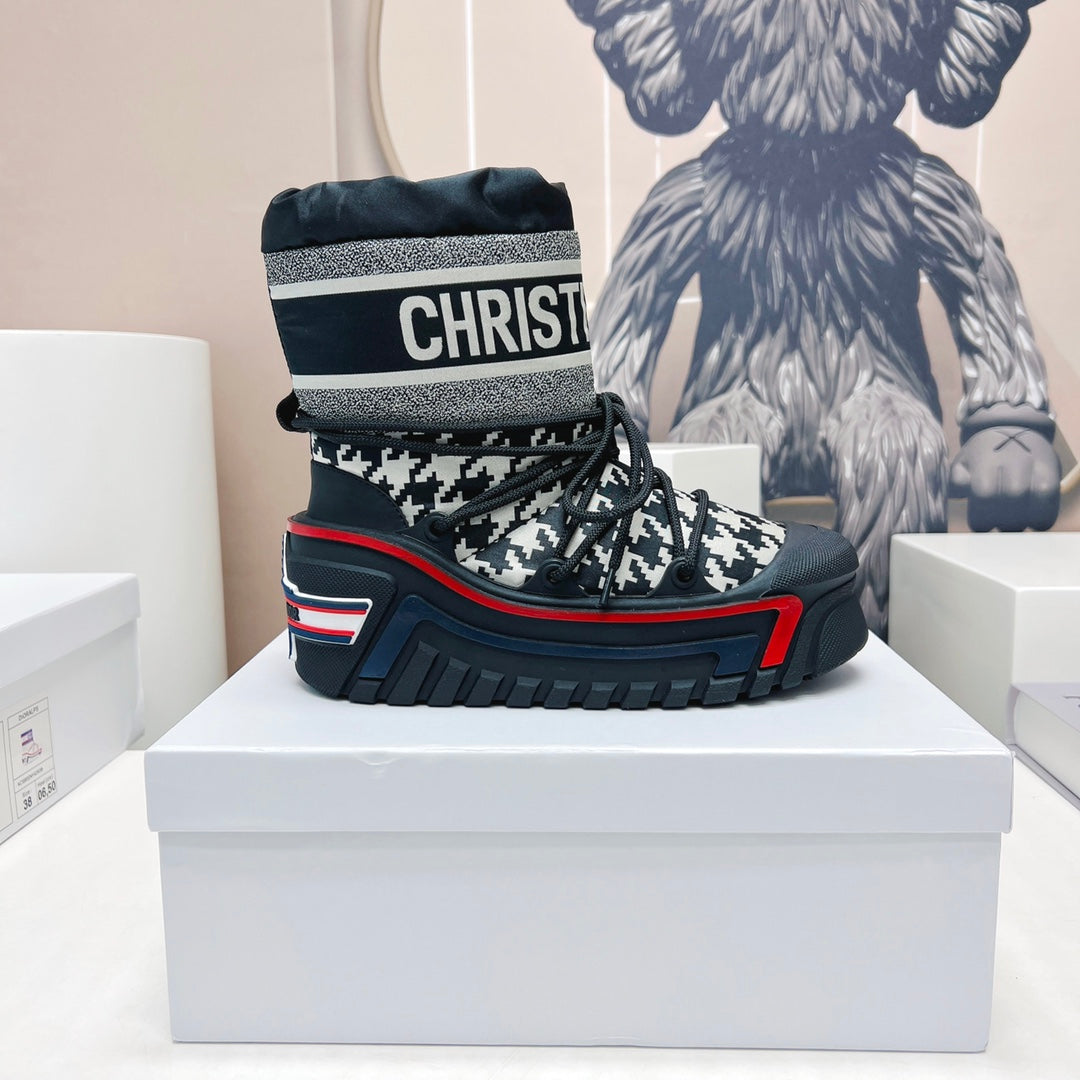 CD Snow Ankle Boots Black White Cowhide Nylon Fabric 539663