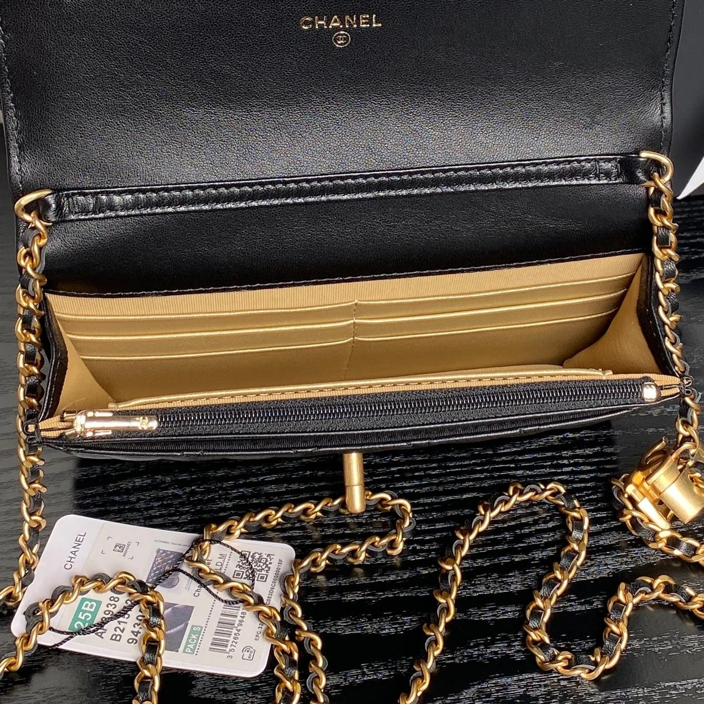 CHANEL 25S CHAIN WALLET 19 IN BLACK LAMBSKIN GOLD HARDWARE