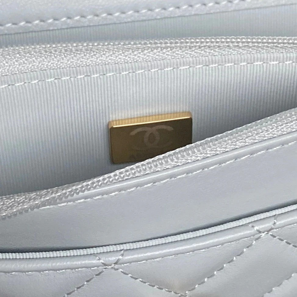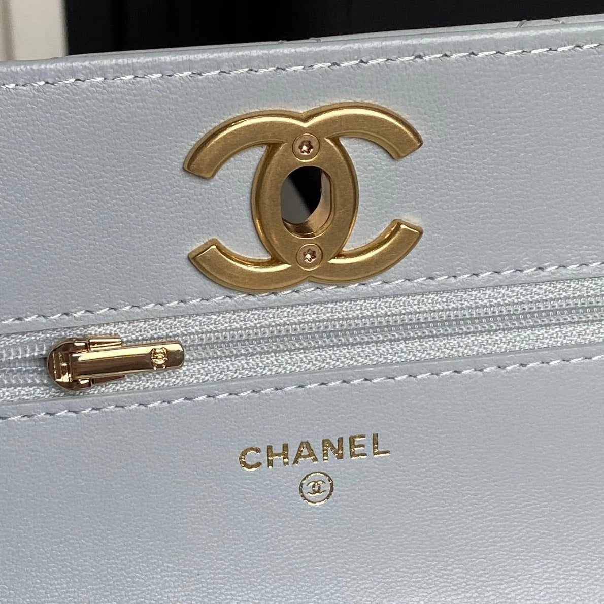 CHANEL 25S CHAIN WALLET 19 IN LIGHT BLUE LAMBSKIN GOLD HARDWARE