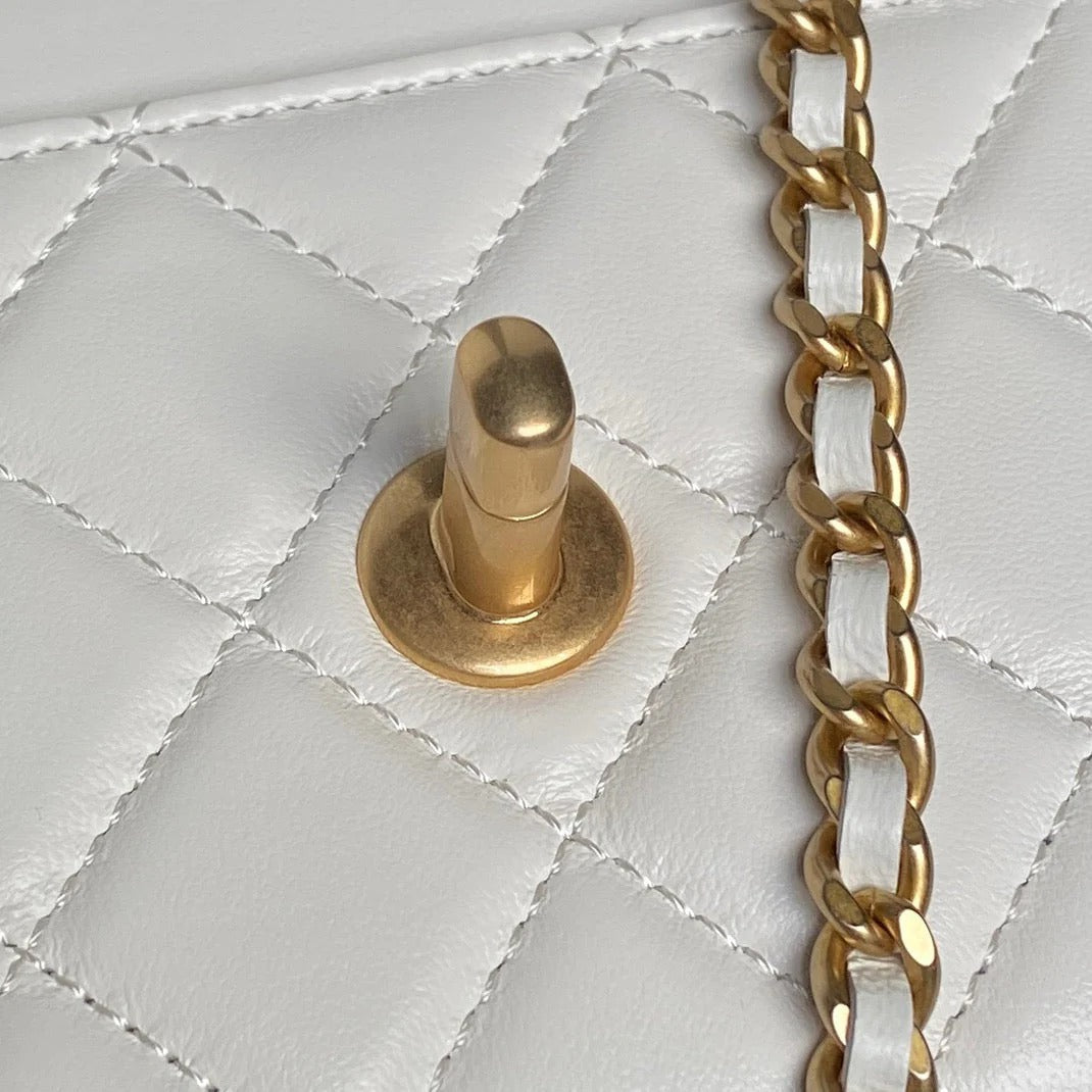 CHANEL 25S CHAIN WALLET 19 IN IVORY LAMBSKIN GOLD HARDWARE