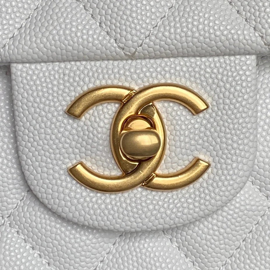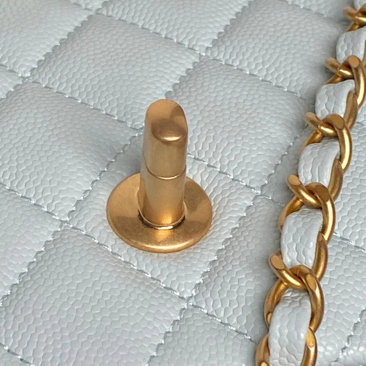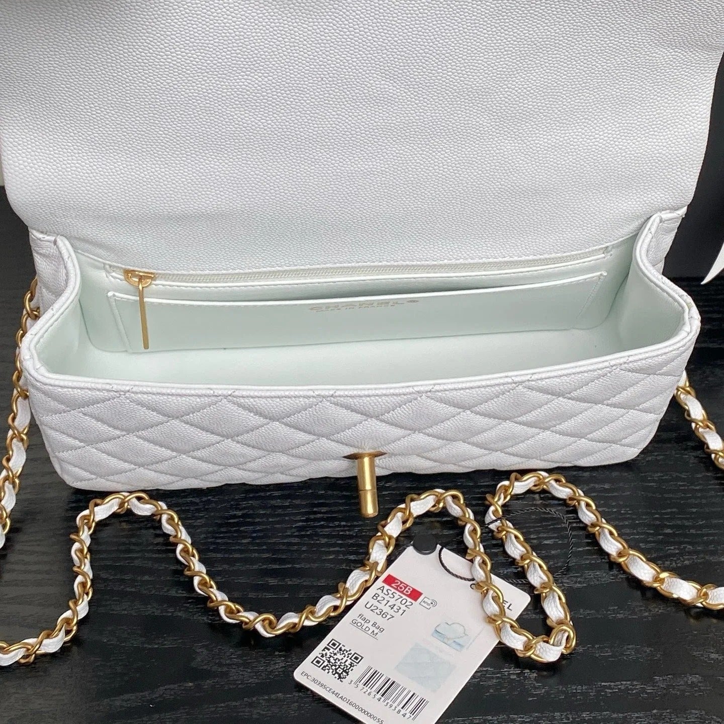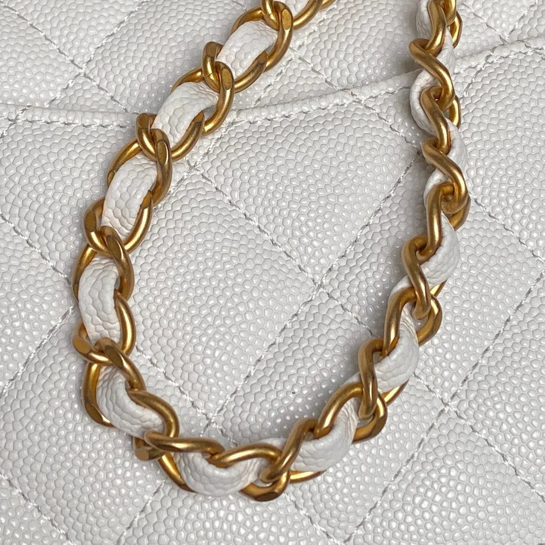 CHANEL 25S FLAP BAG 22 IN WHITE CALFSKIN GOLD HARDWARE
