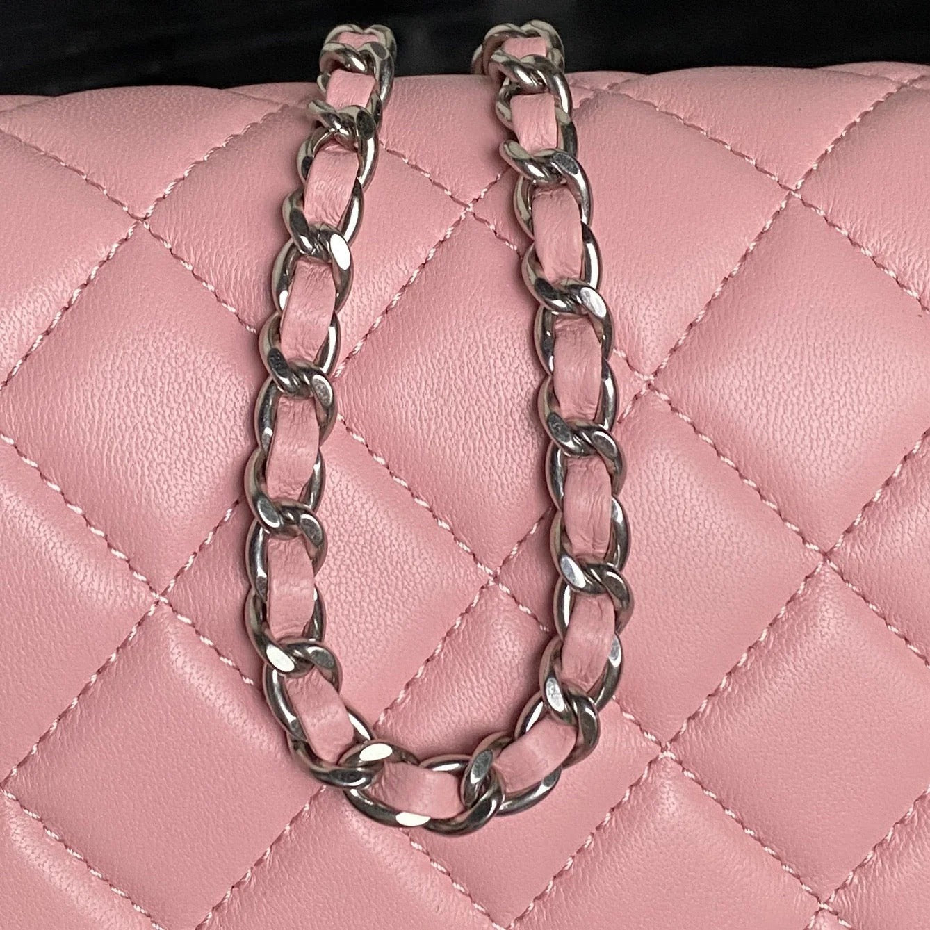 CHANEL 25S FLAP BAG 22 IN PINK CALFSKIN SILVER HARDWARE