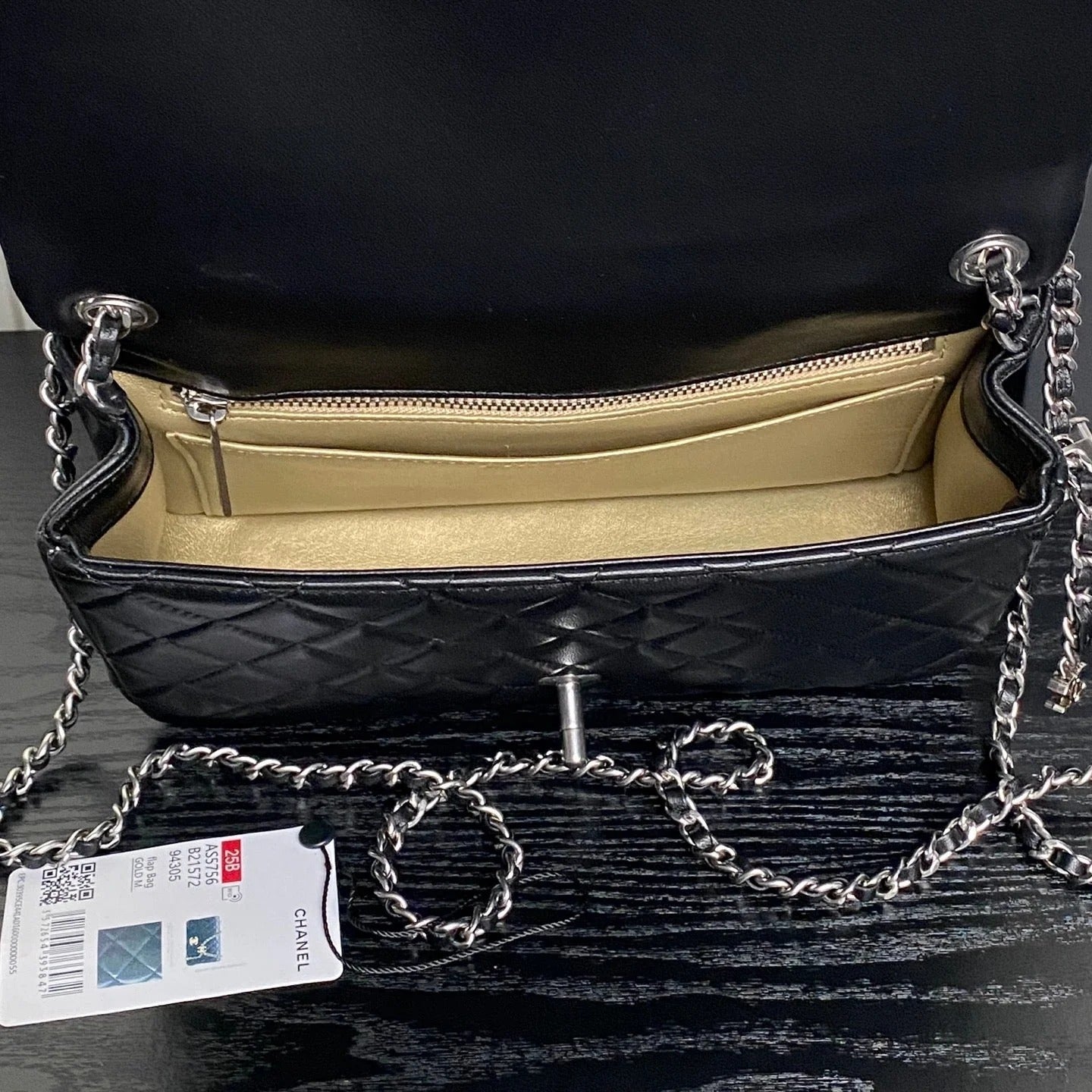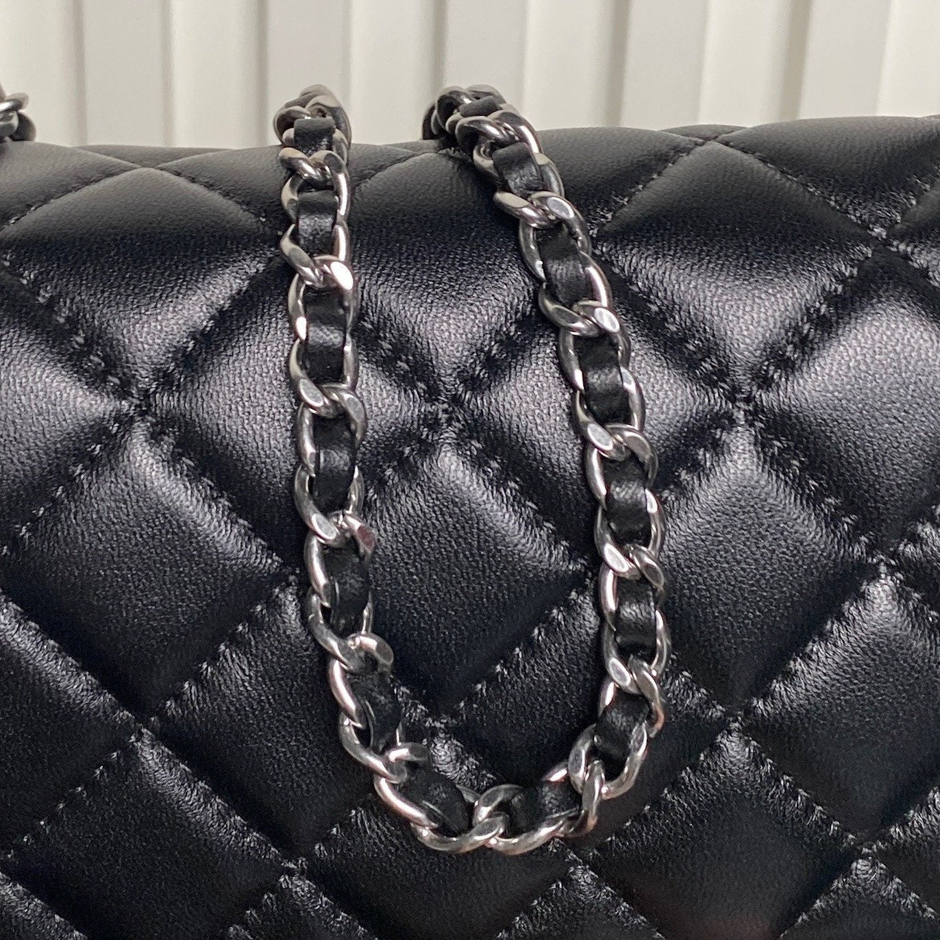 CHANEL 25S FLAP BAG 23 IN BLACK CALFSKIN SILVER HARDWARE
