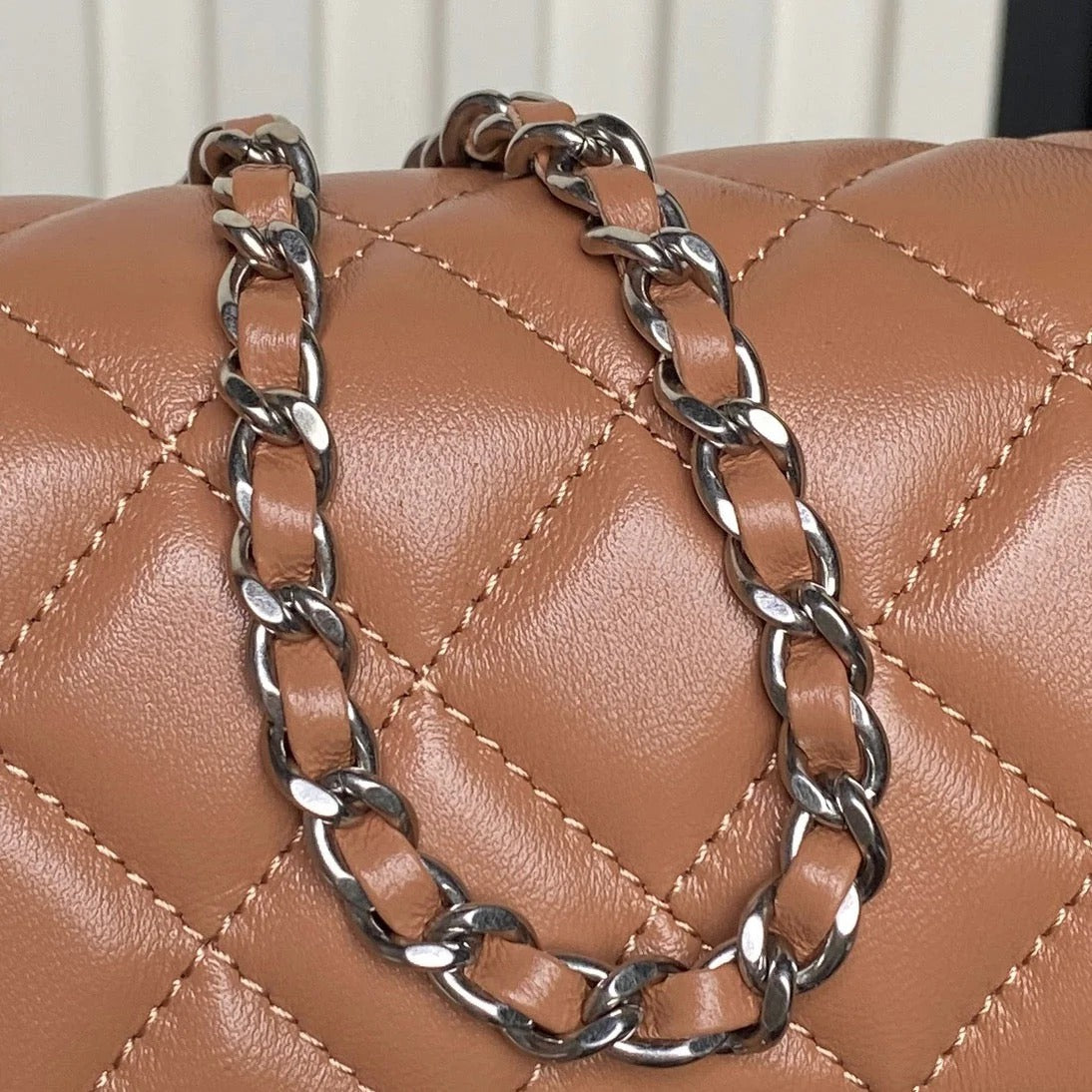 CHANEL 25S FLAP BAG 23 IN DARK CARAMEL CALFSKIN SILVER HARDWARE