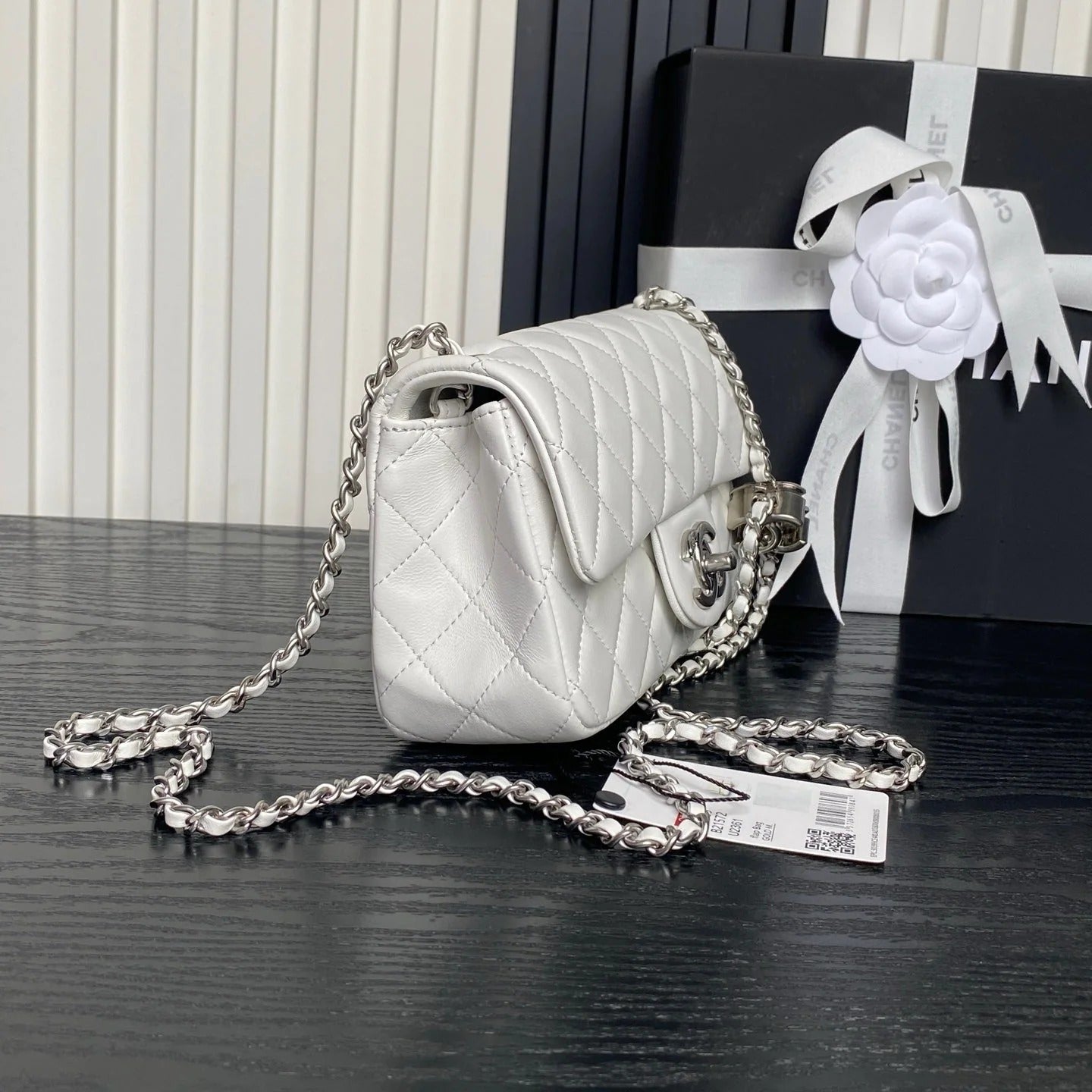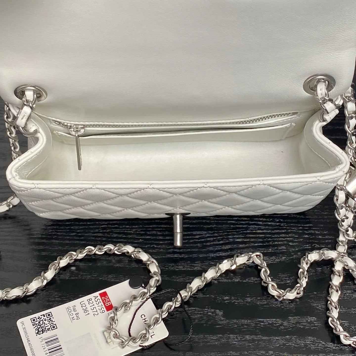 CHANEL 25S FLAP BAG 23 IN WHITE CALFSKIN SILVER HARDWARE