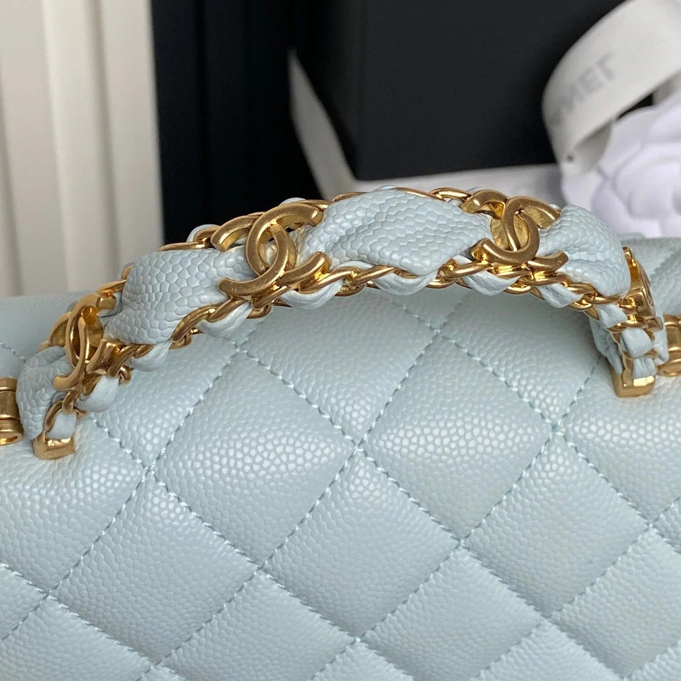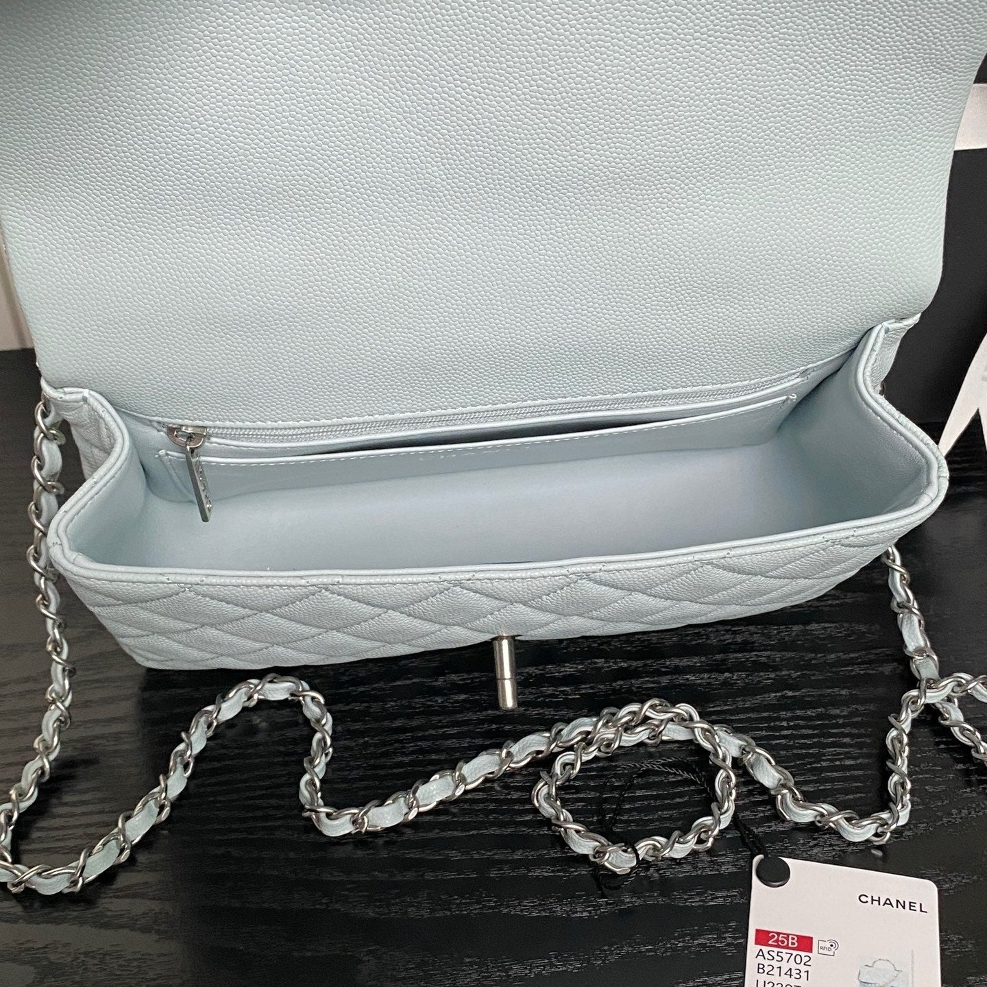 CHANEL 25S FLAP BAG 19 IN LIGHT BLUE CALFSKIN GOLD HARDWARE