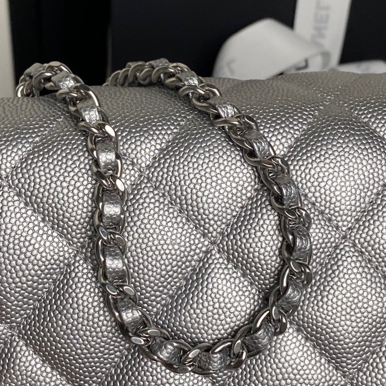 CHANEL 25S HOBO BAG 30 CM IN SILVER LAMBSKIN