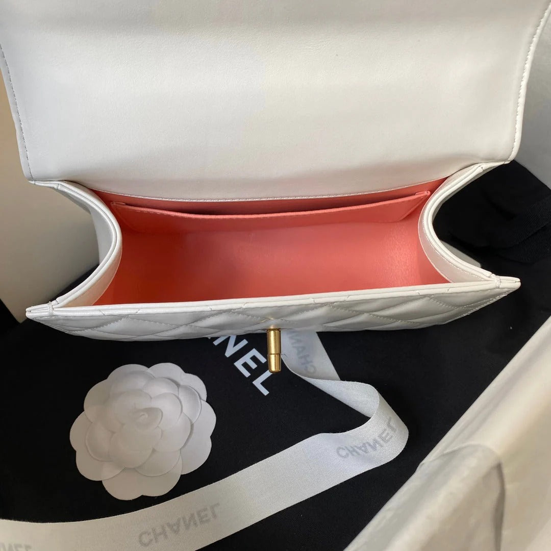 CHANEL 25S MINI FLAP BAG 18 IN WHITE CALFSKIN