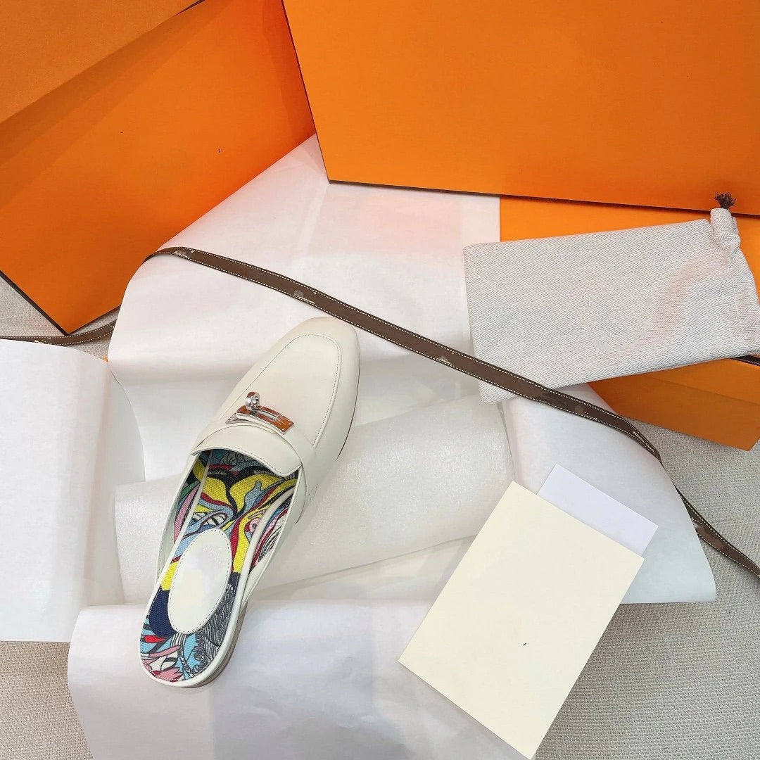 0Z MULE WHITE CALFSKIN WITH PATTERN