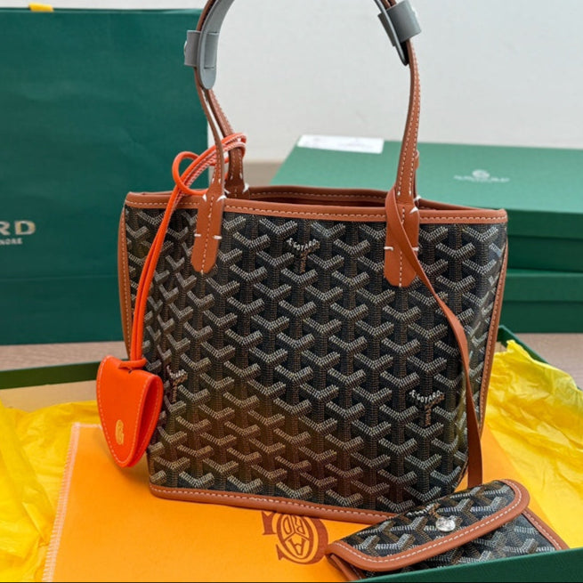 ANJOU MINI BAG 20 IN TAN CALFSKIN AND BLACK GOYARDINE CANVAS