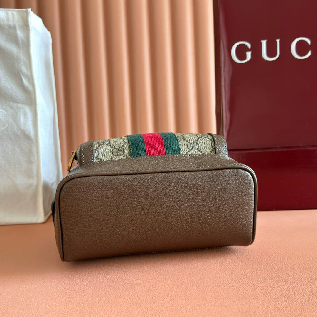GG Small Ophidia Backpack Beige & Dark Brown GG Monogram Fabric 272187