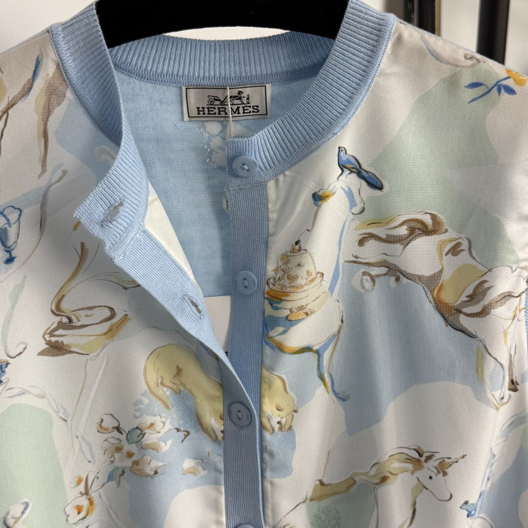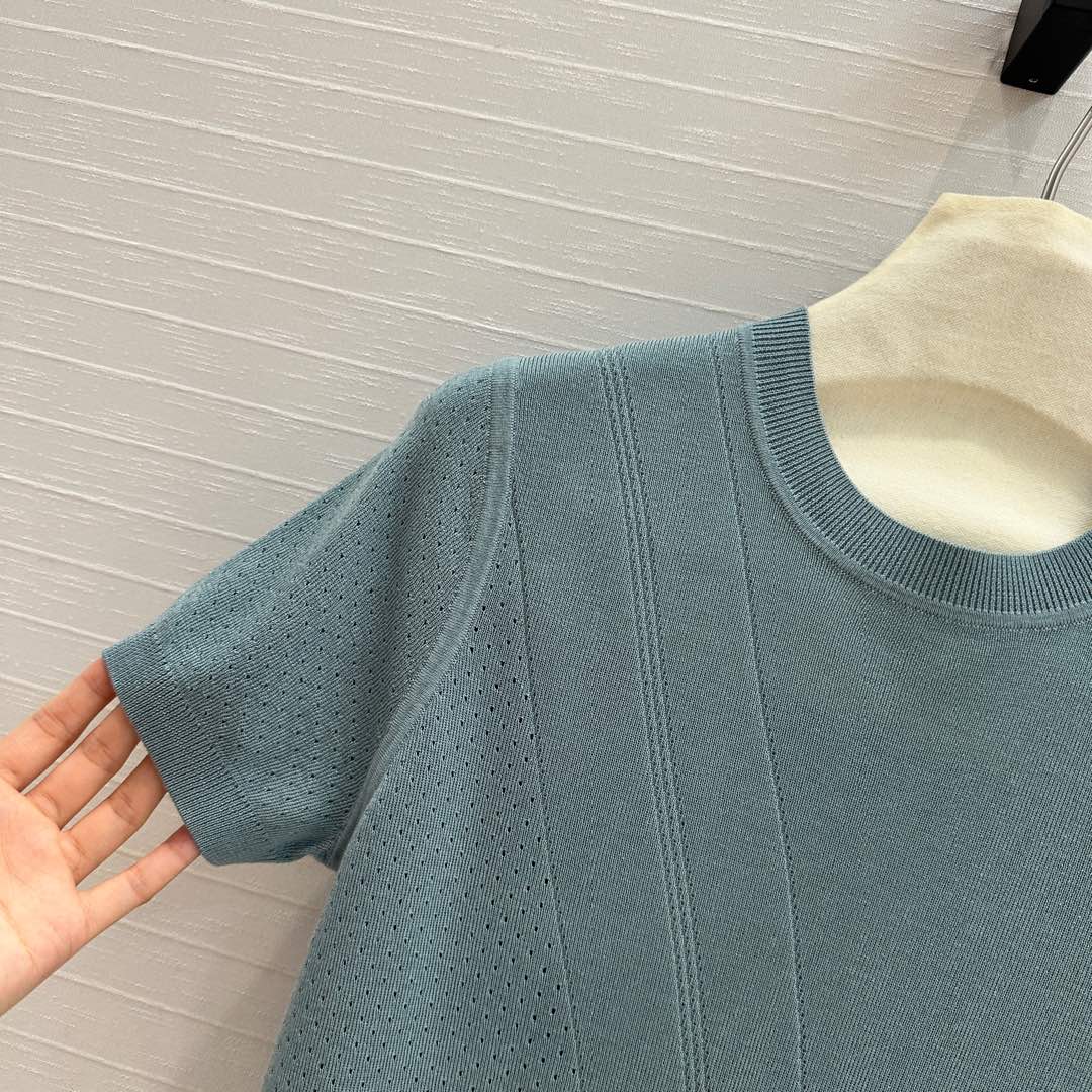 Hm 25 Hollow Knit Short-Sleeve Top Blue Green Tencel Cotton