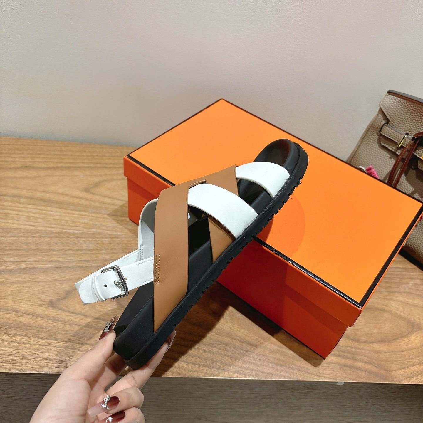 HM 25 Heracles Sandal White Light Brown Calfskin