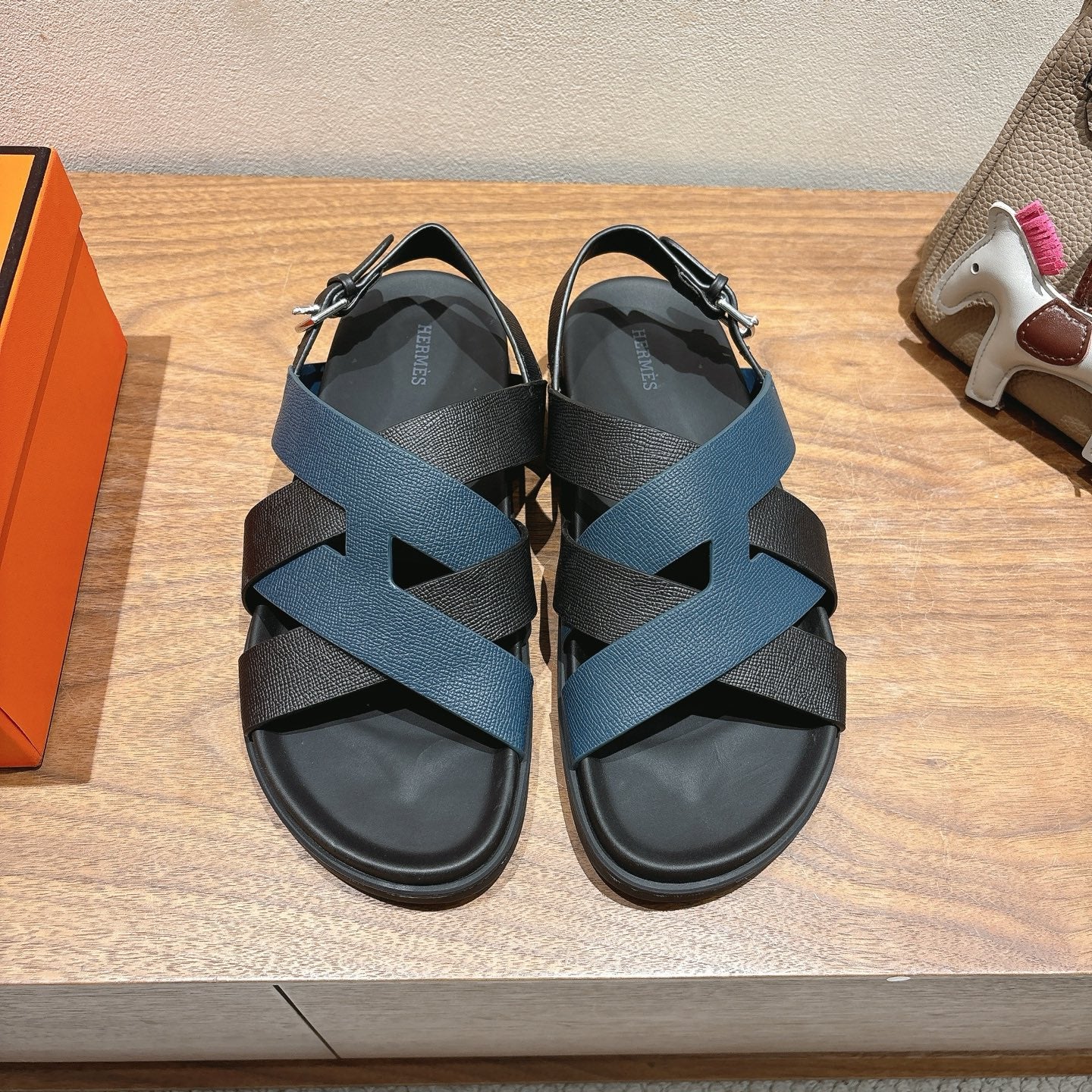 HM 25 Heracles Sandal Black Dark Blue Epsom Leather