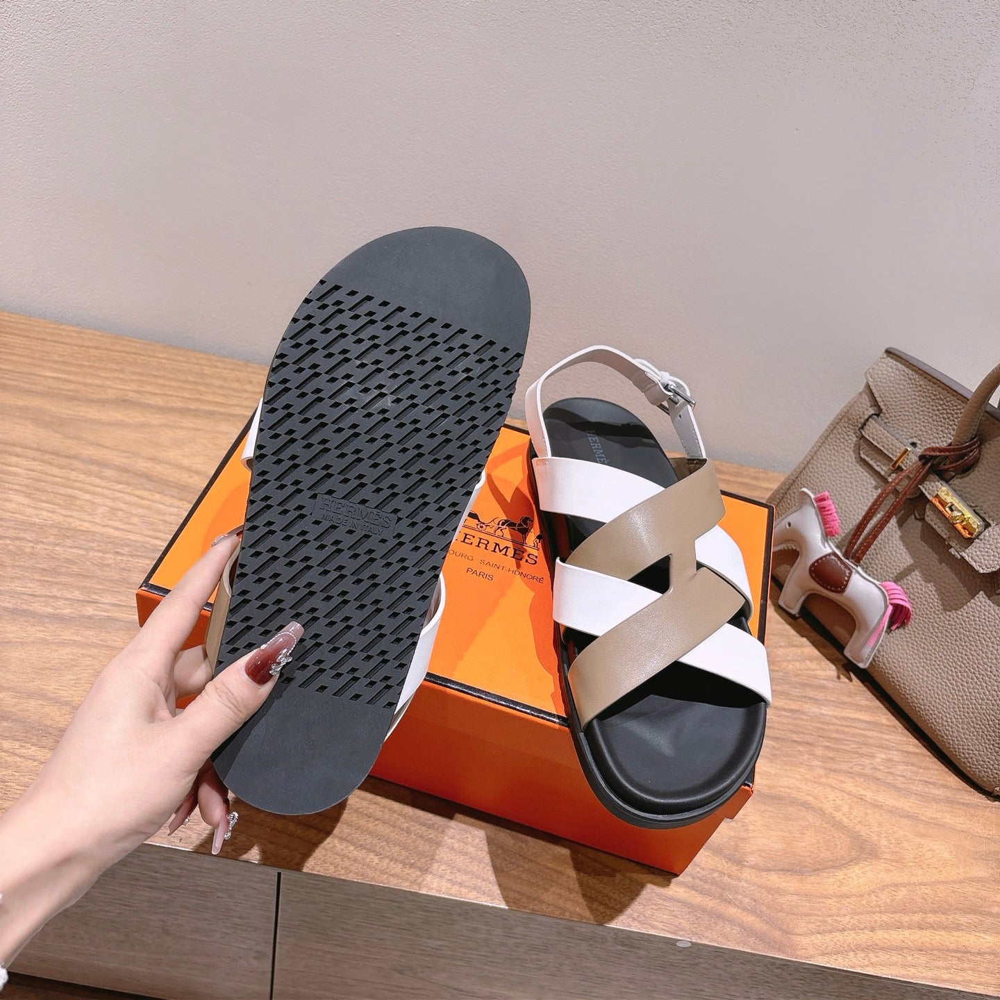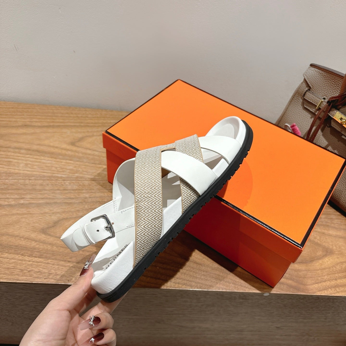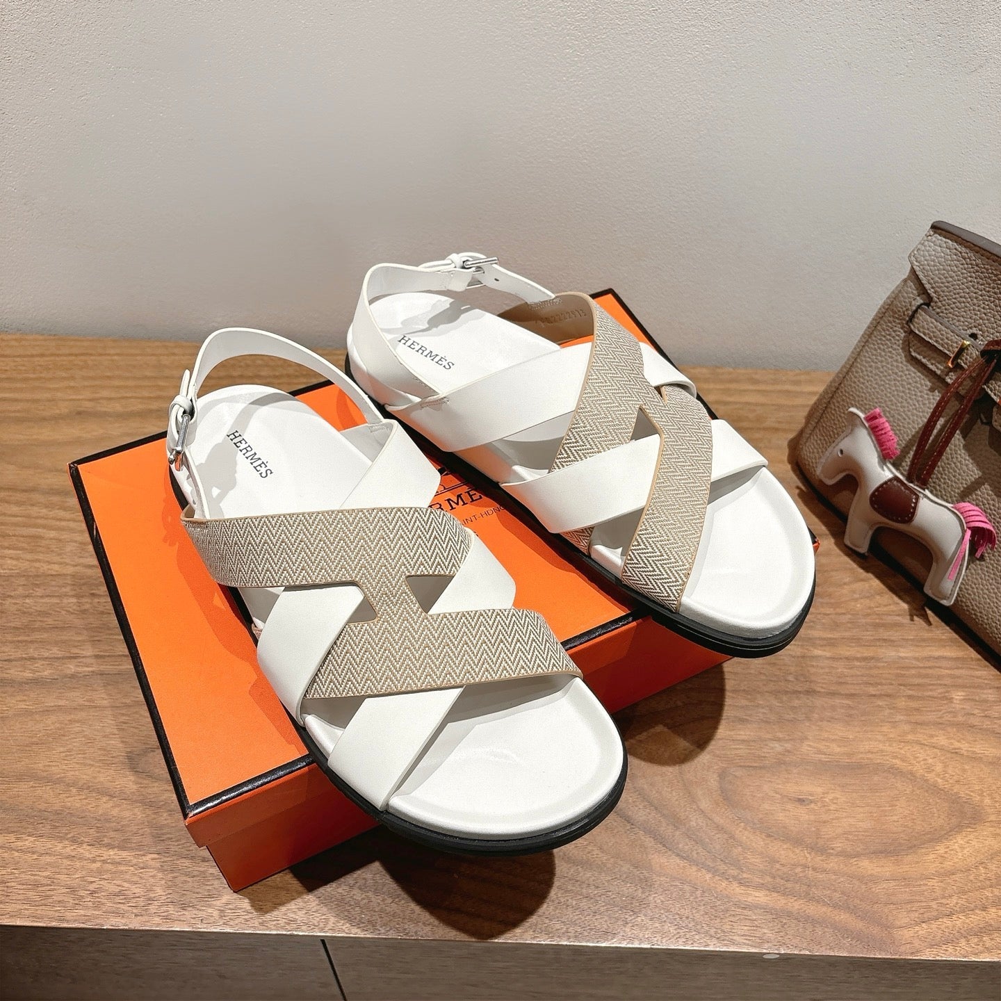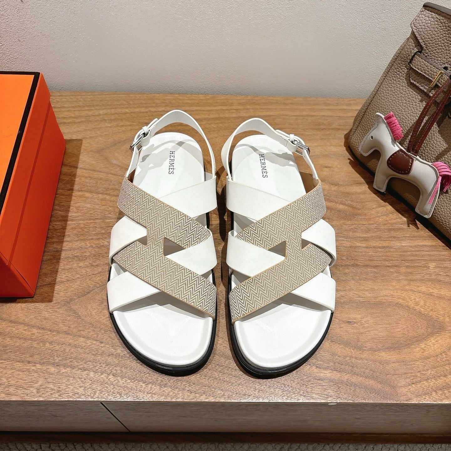 HM 25 Heracles Sandal White Calfskin Nude Canvas