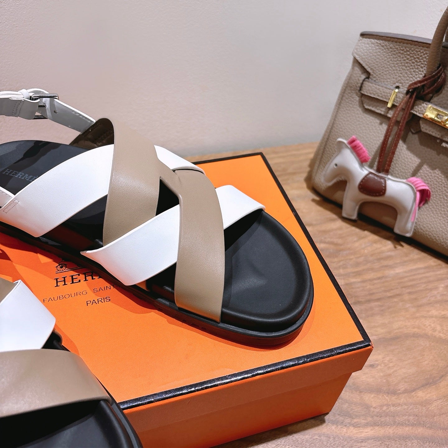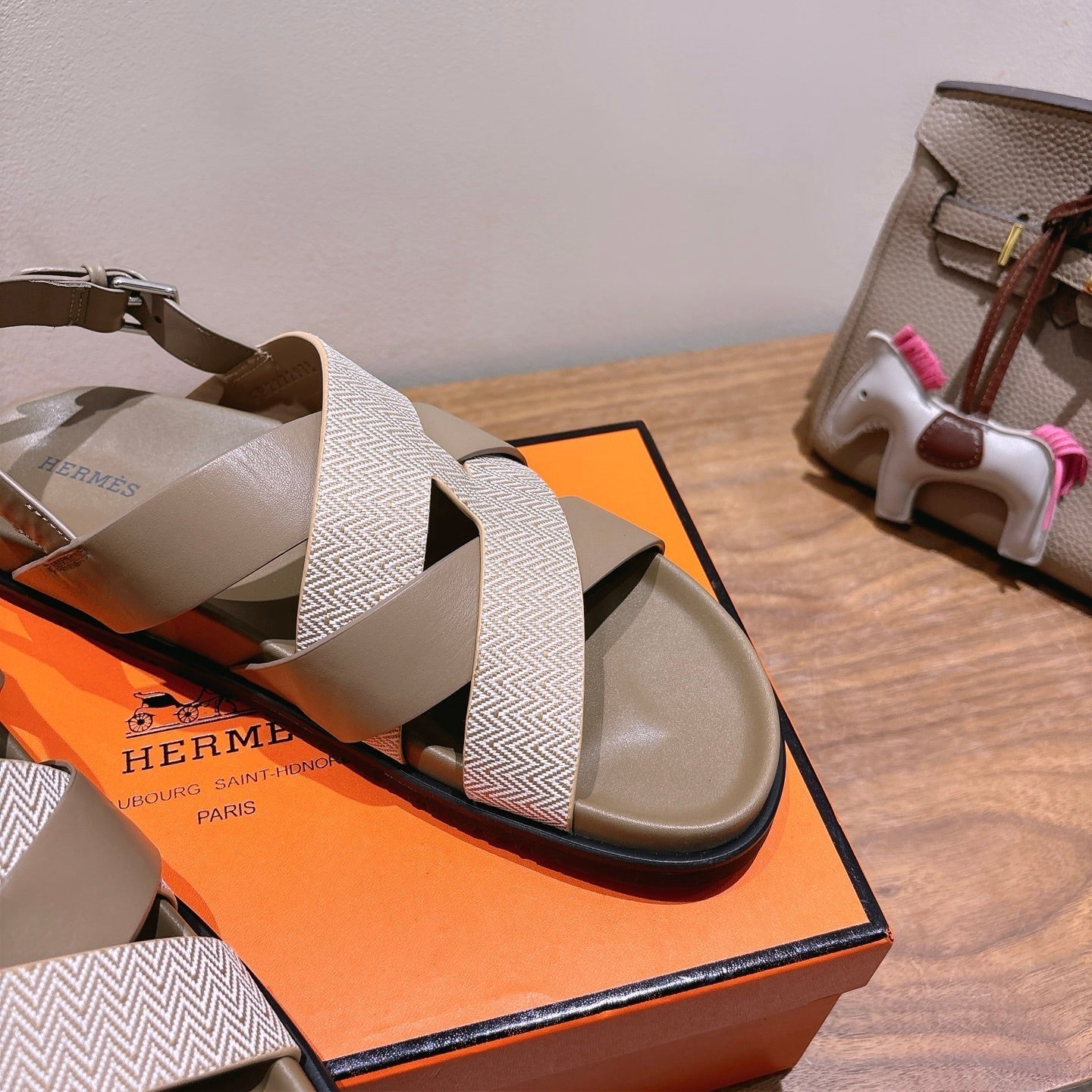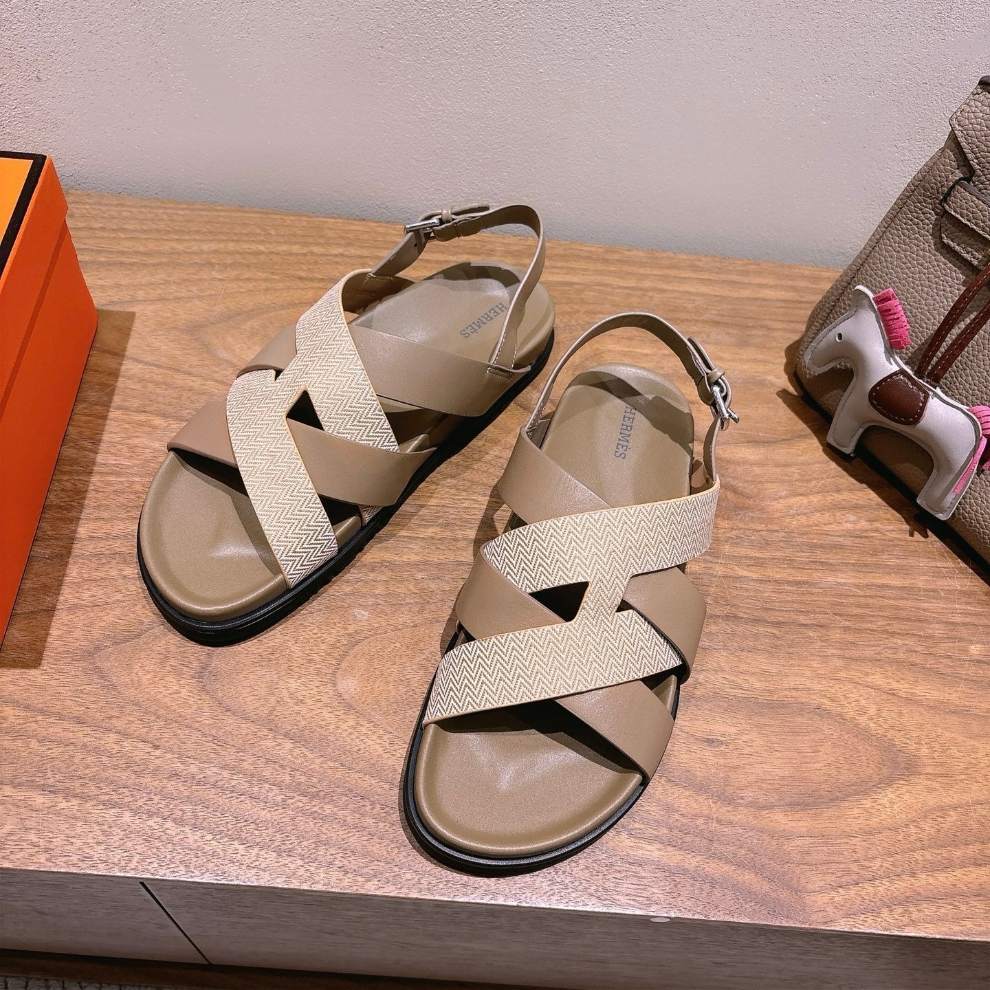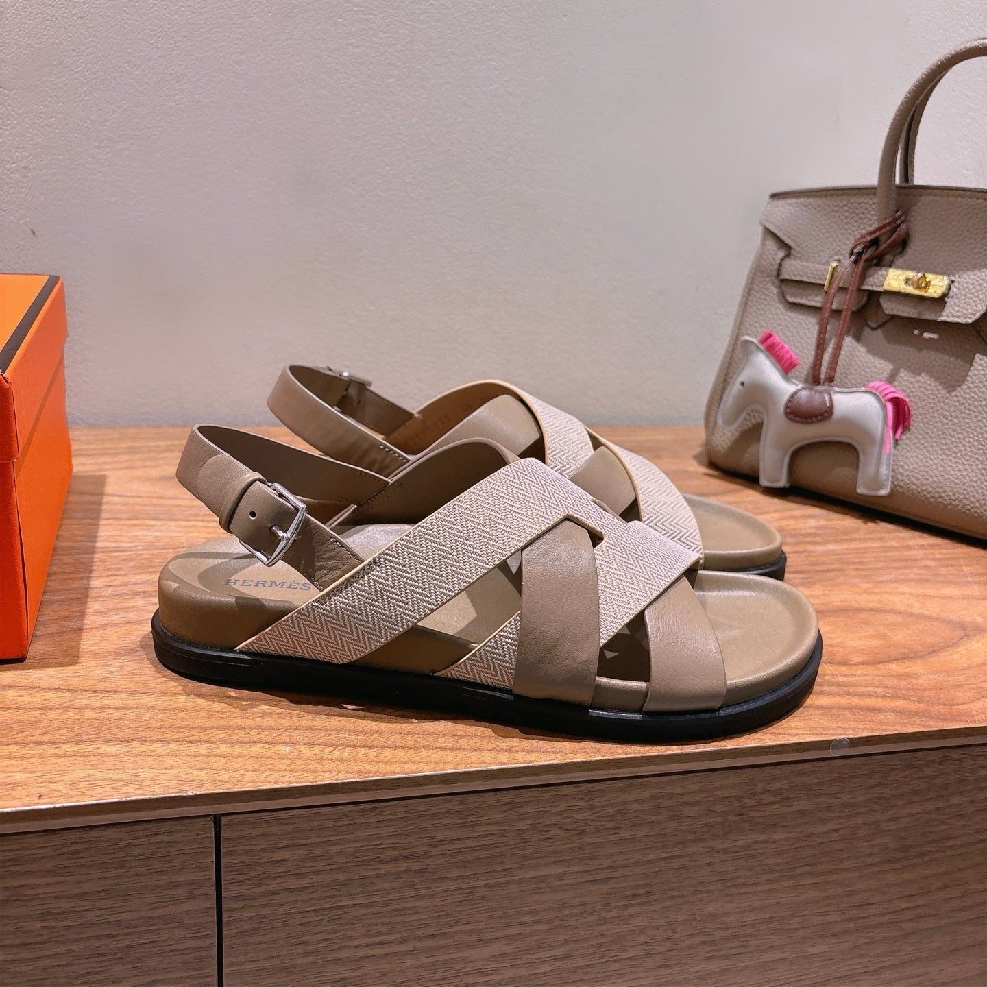 HM 25 Heracles Sandal Brown Calfskin Light Pink Canvas