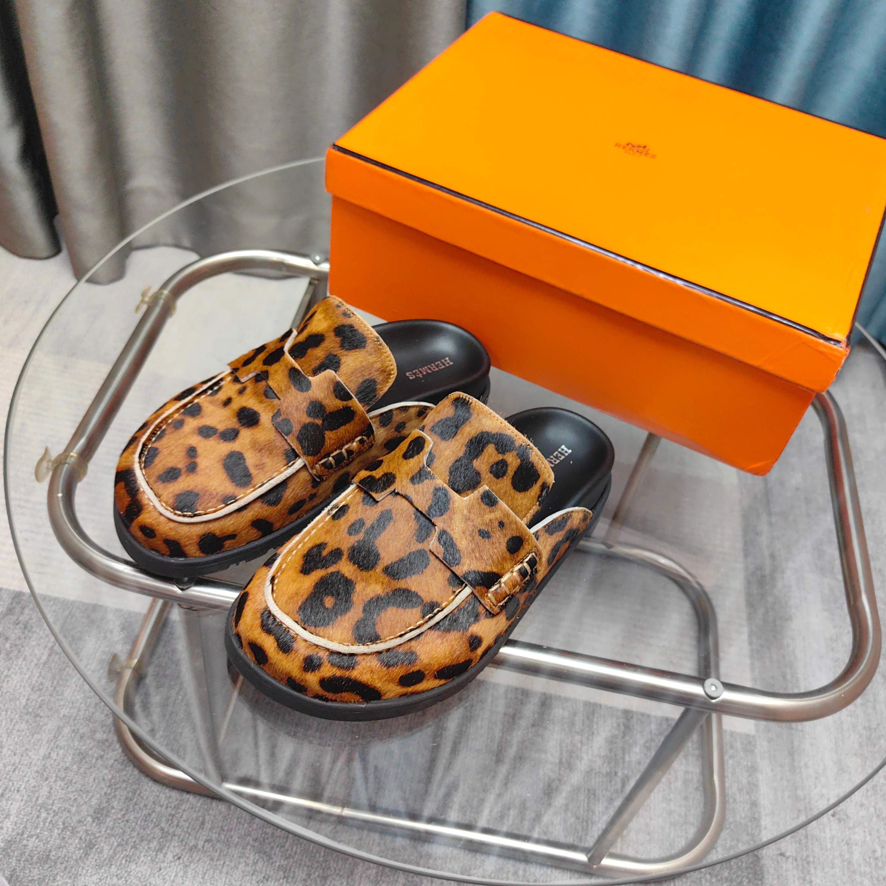 HM 25 Go Mule Light Leopark Horsehair Fabric 369355