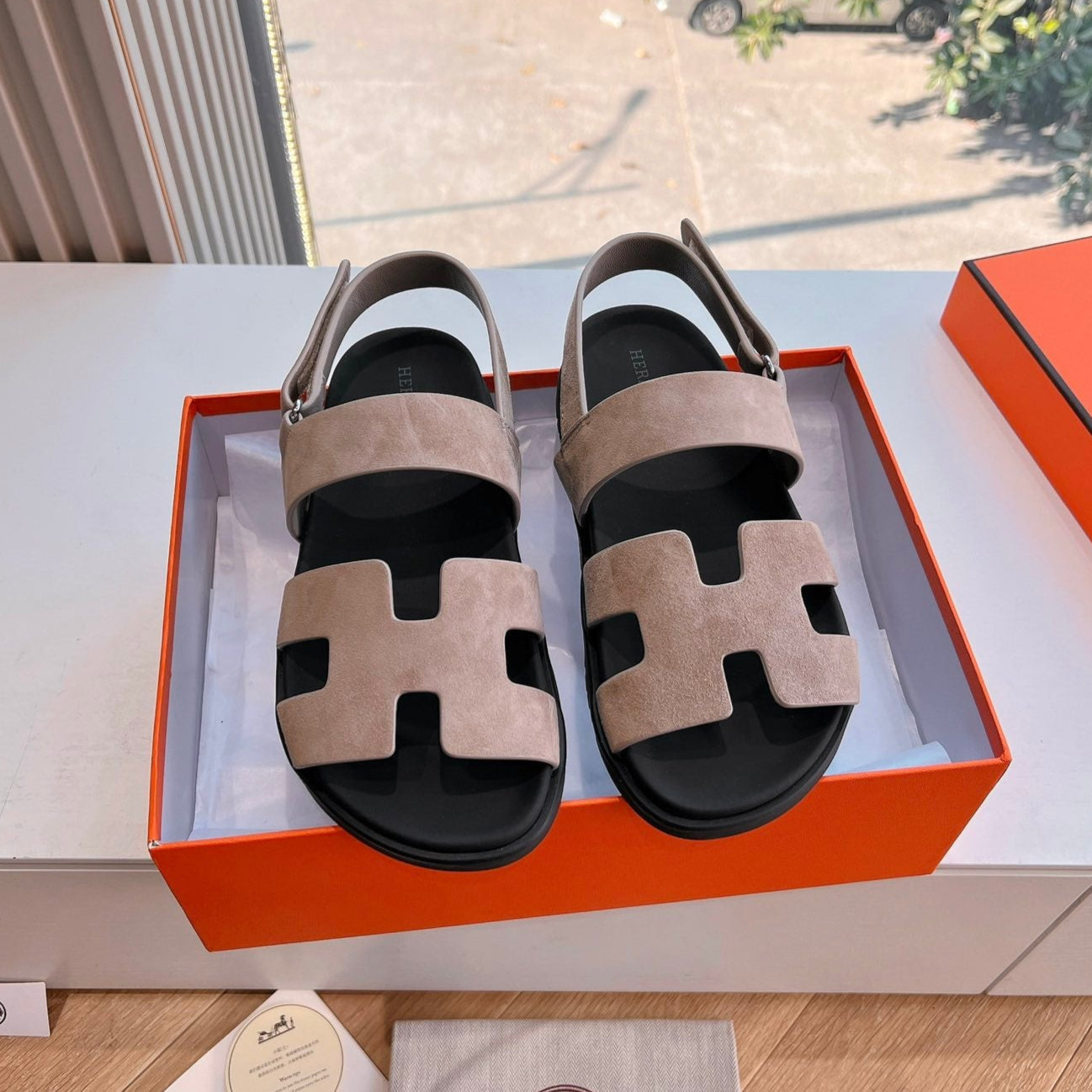 HM 25 Genius Sandal Grey Suede Black Calfskin