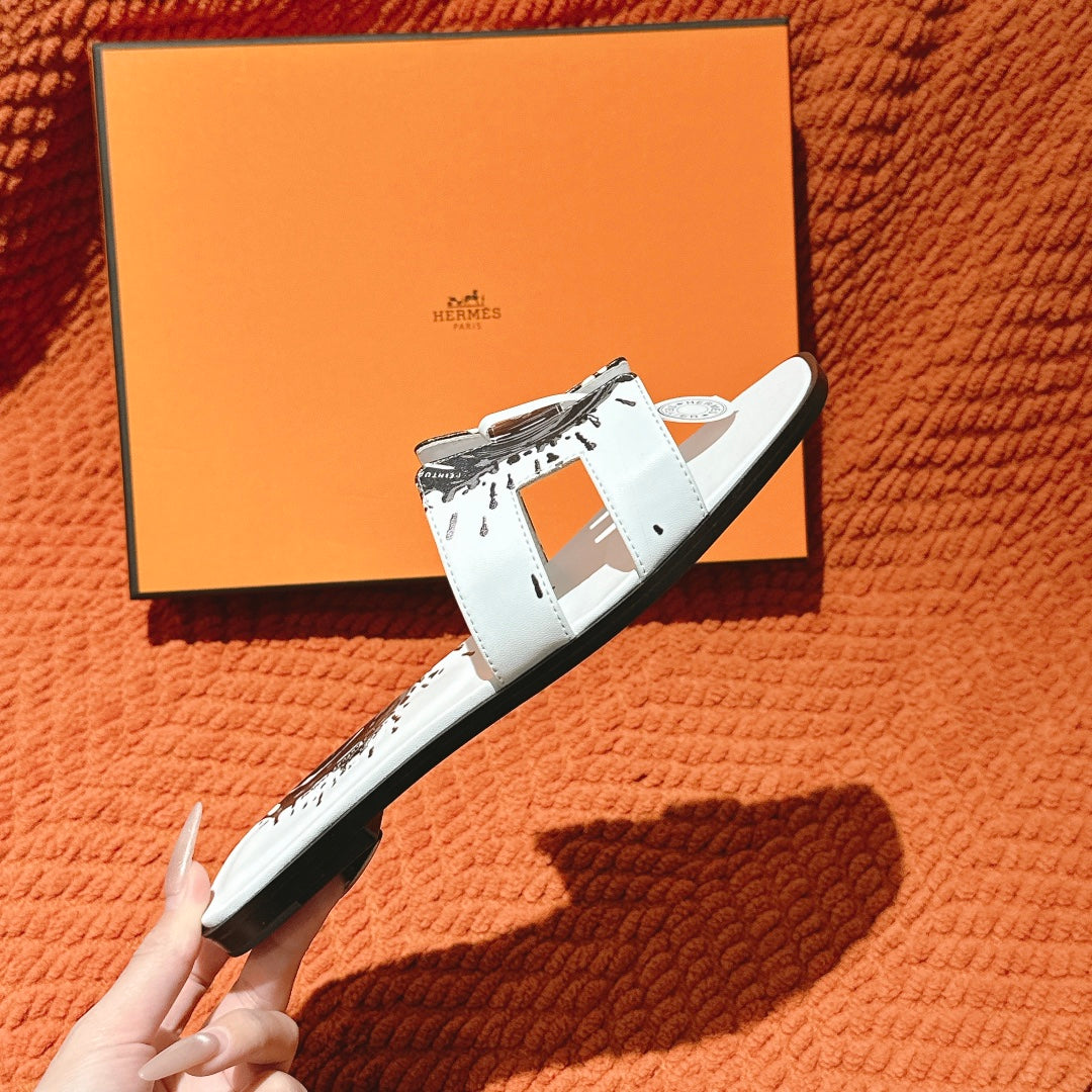HM 3D Oran Sandals White Black Calfskin 243963