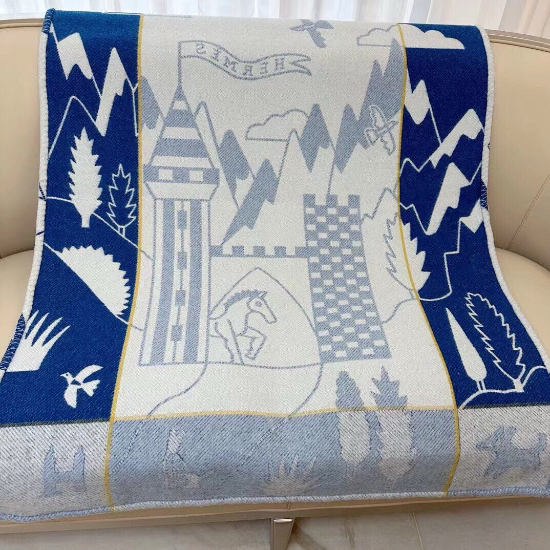 HM Avalon Throw Blanket Blue Grey Wool Cashmere