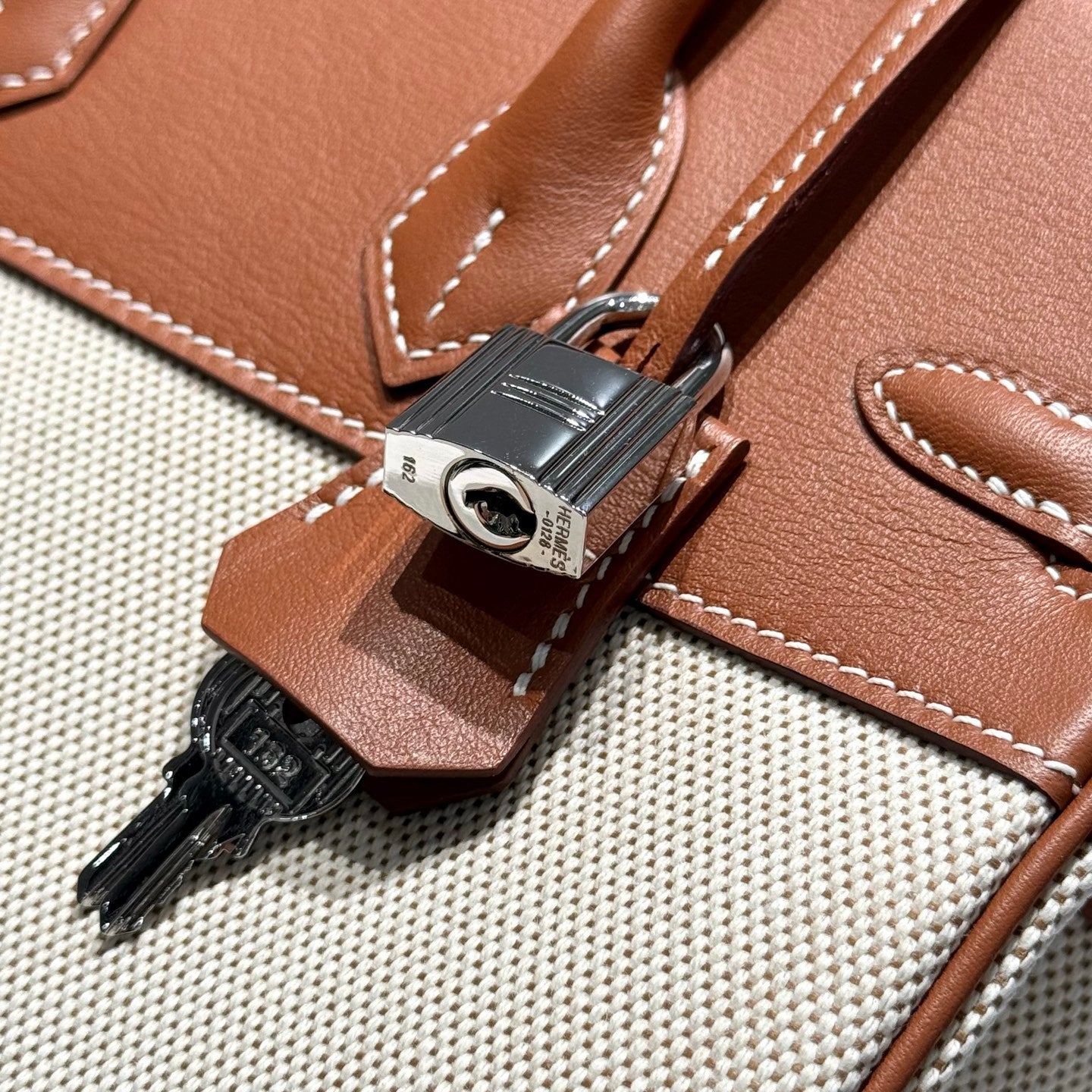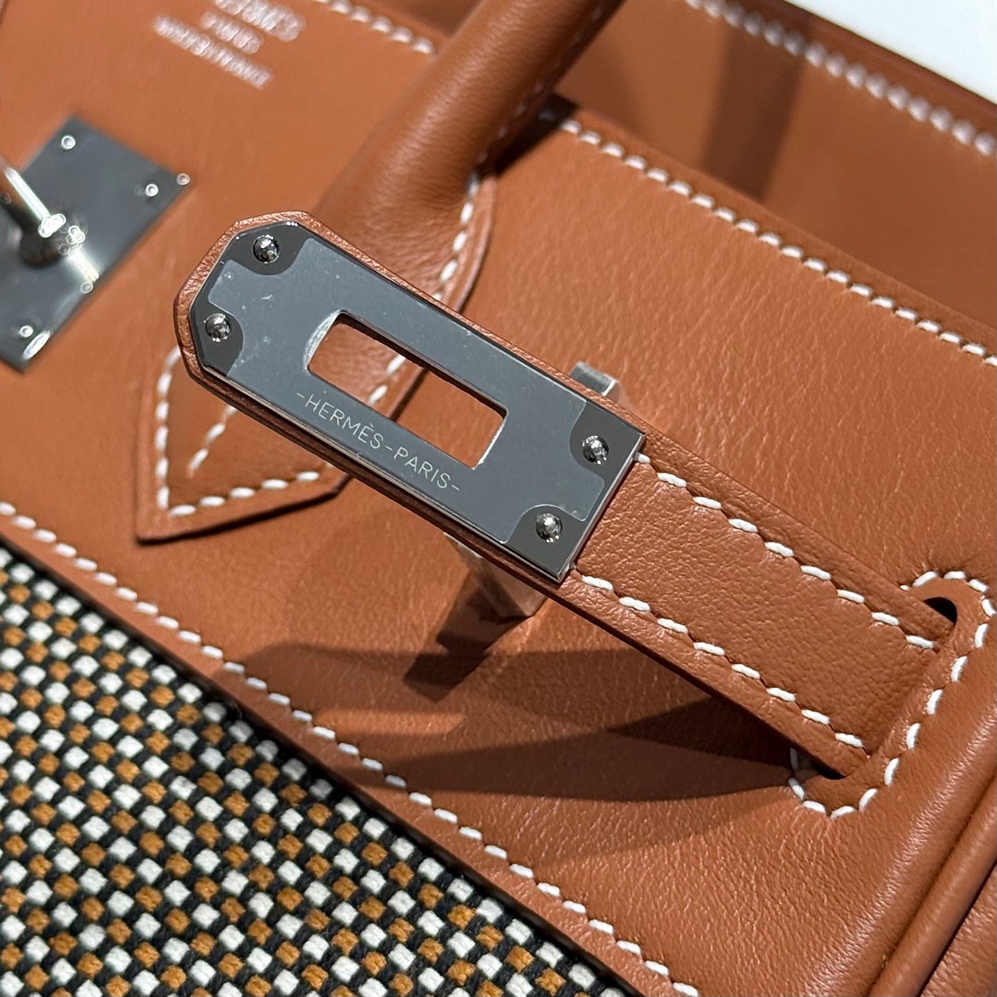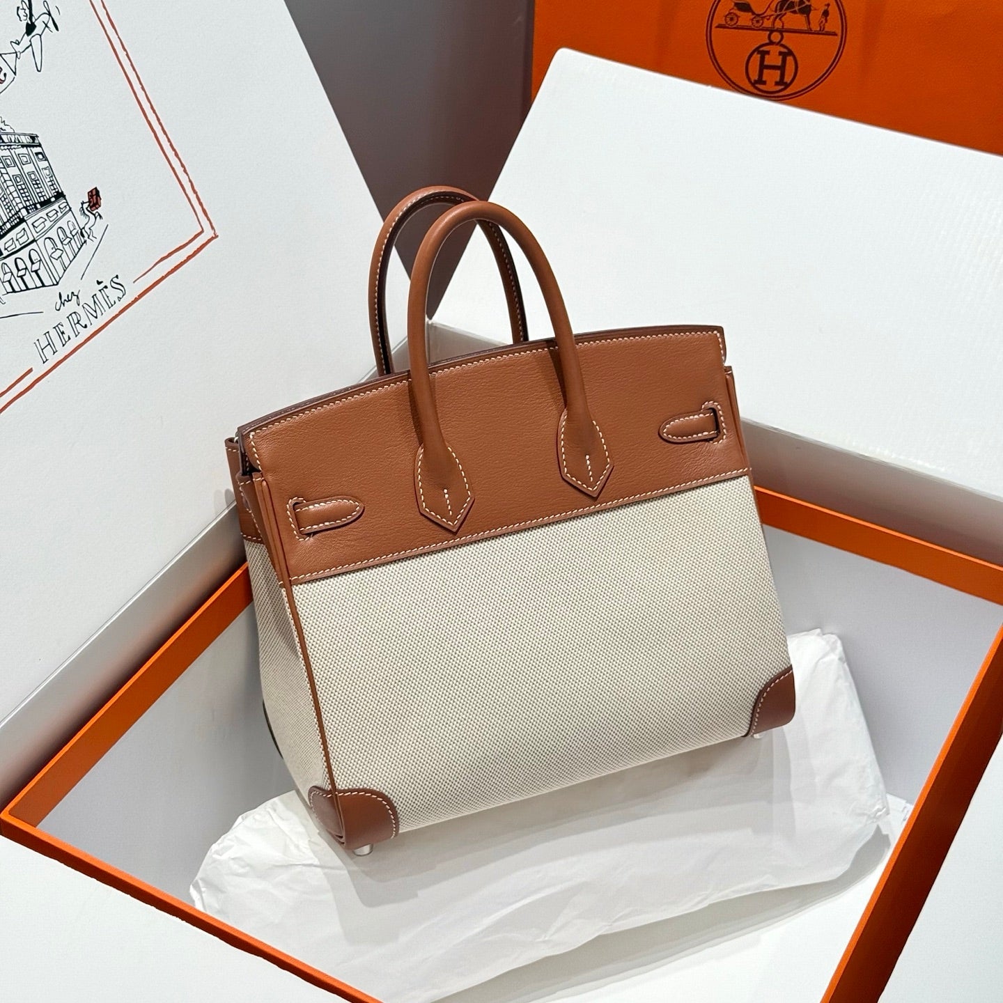 HM Birkin 25cm Golden Brown Swift Cowhide With Beige Canvas Fabric Shw 249989