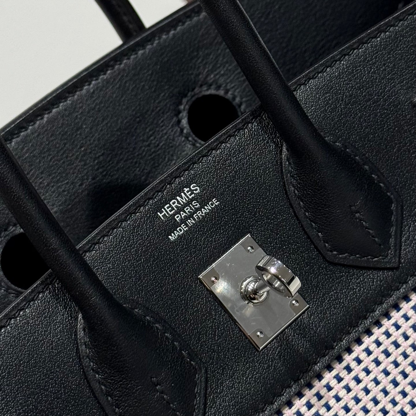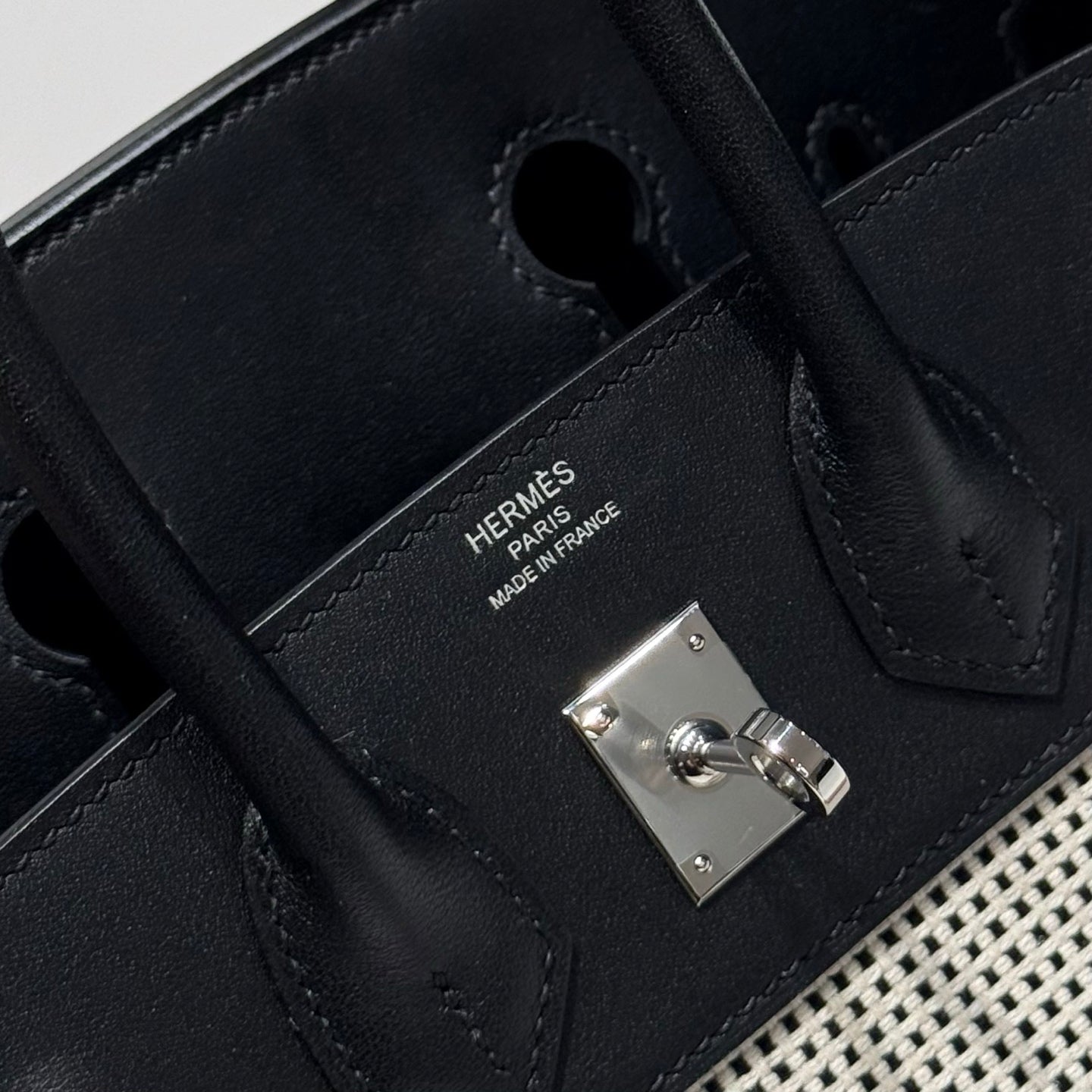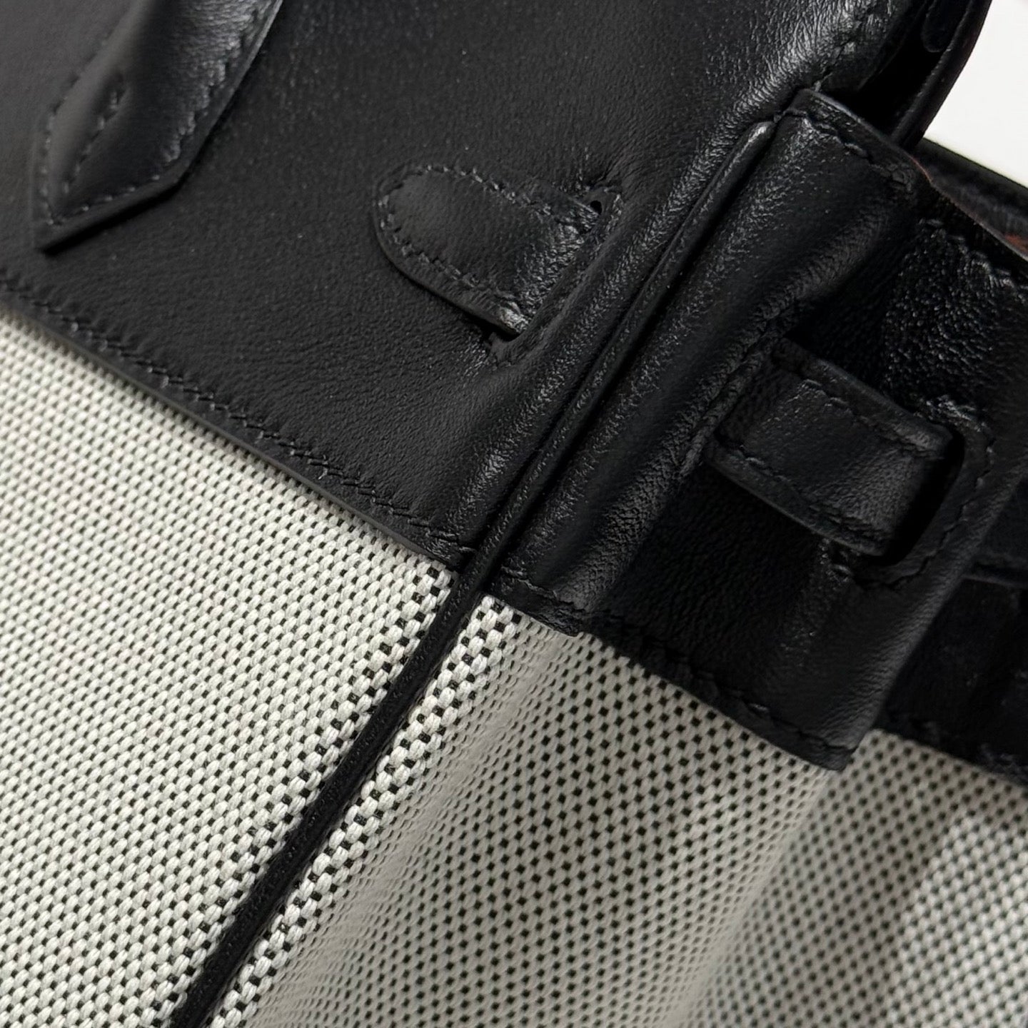 HM Birkin 25cm Black Swift Cowhide With Waffle Panda Black and White Canvas Fabric Shw 249985