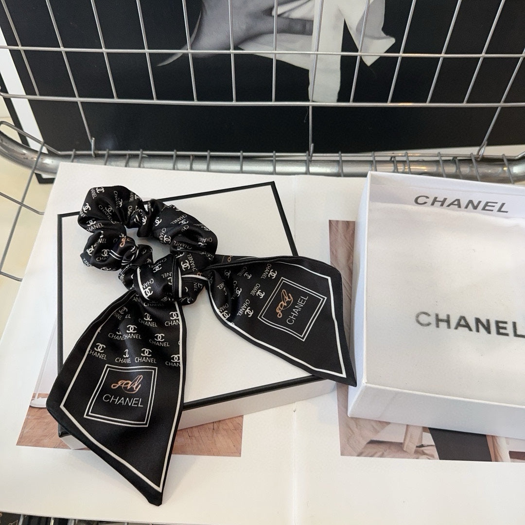 BLACK MONOGRAM FABRIC SCRUNCHIE 412544