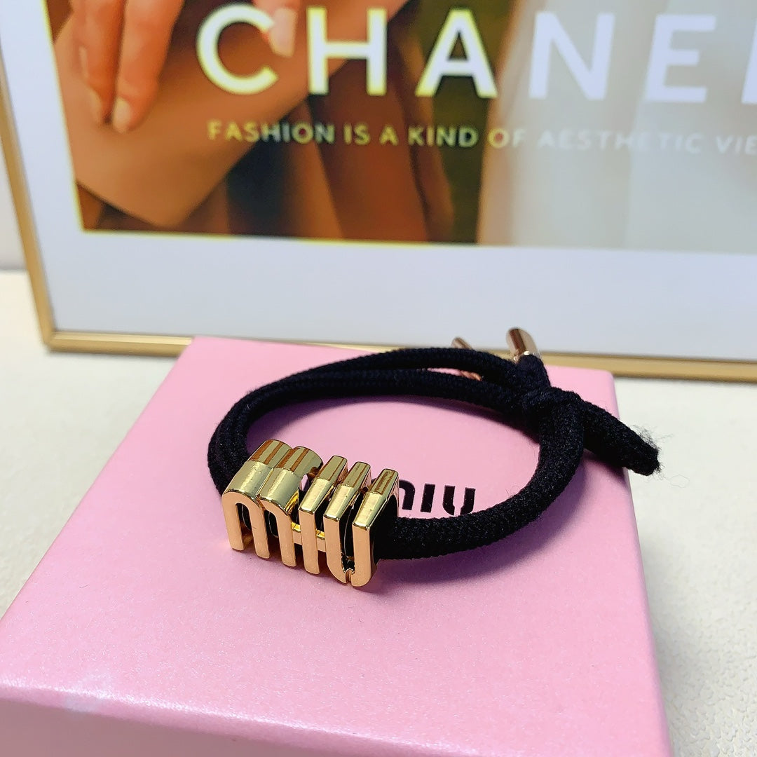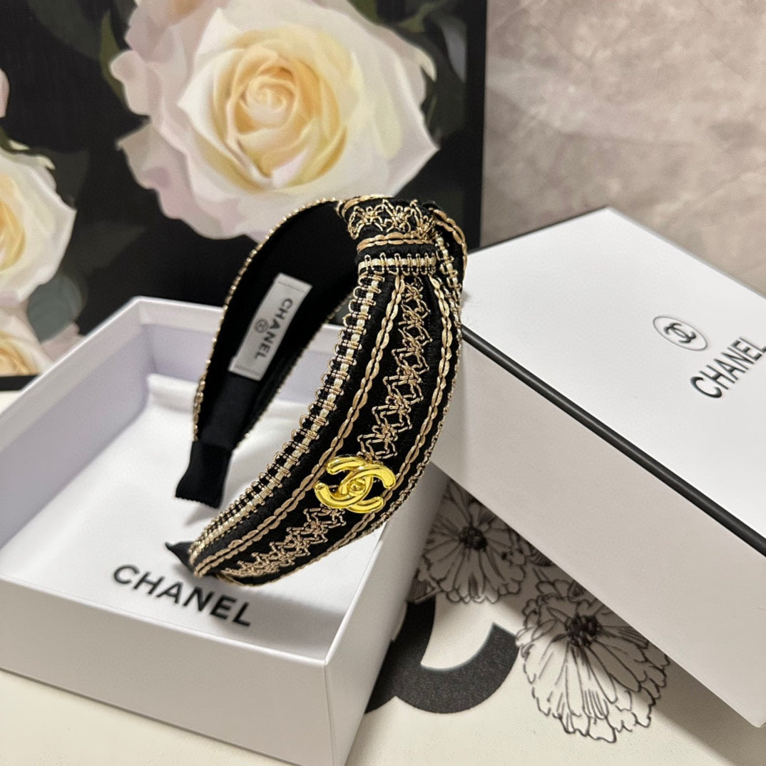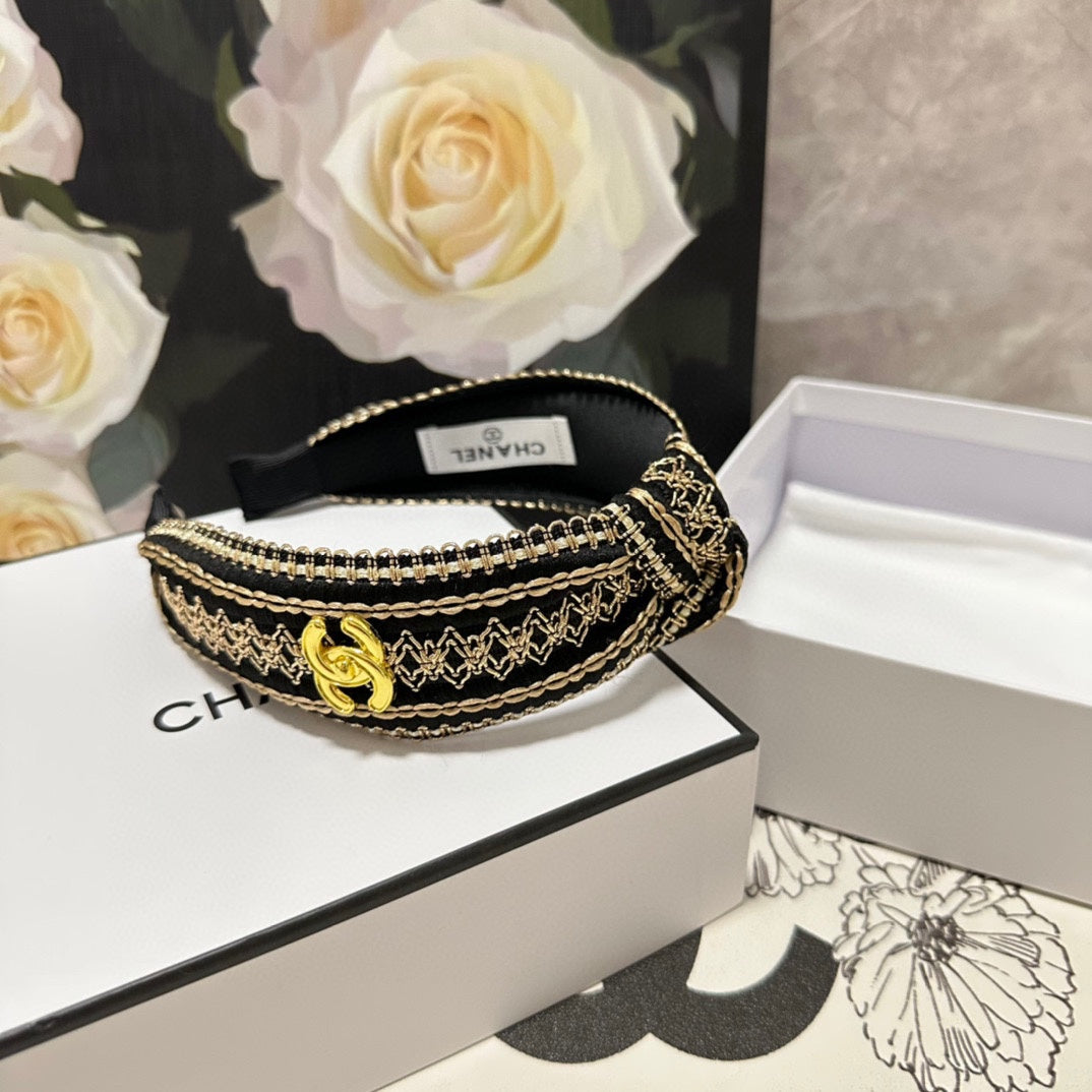 BLACK SILK HAIRBAND WITH GOLD LOGO 412441