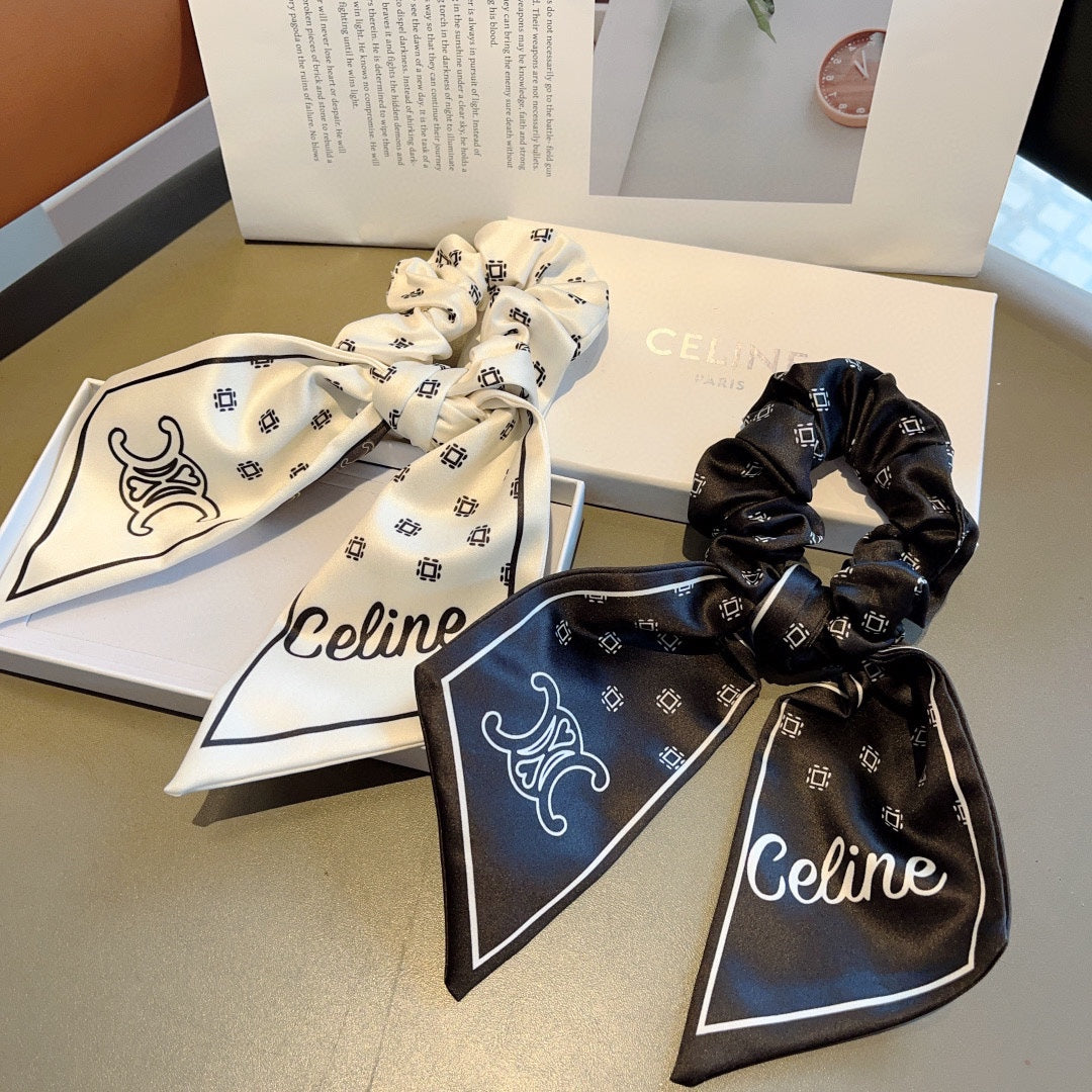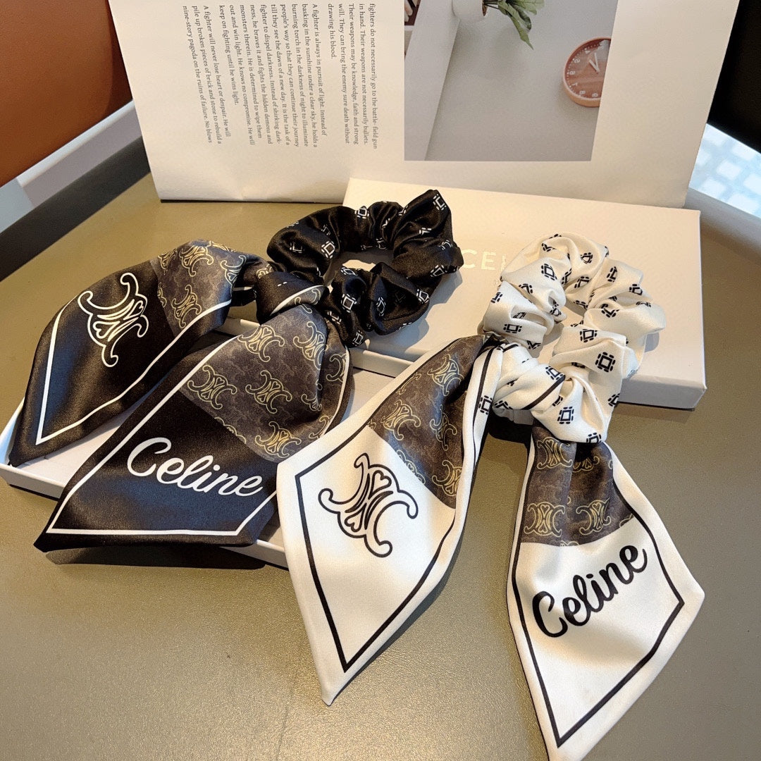 BLACK MIX WHITE MONOGRAM SILK SCRUNCHIES 432896