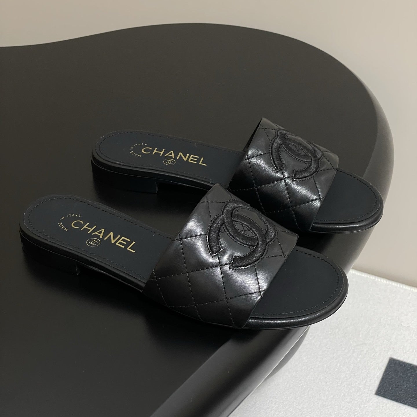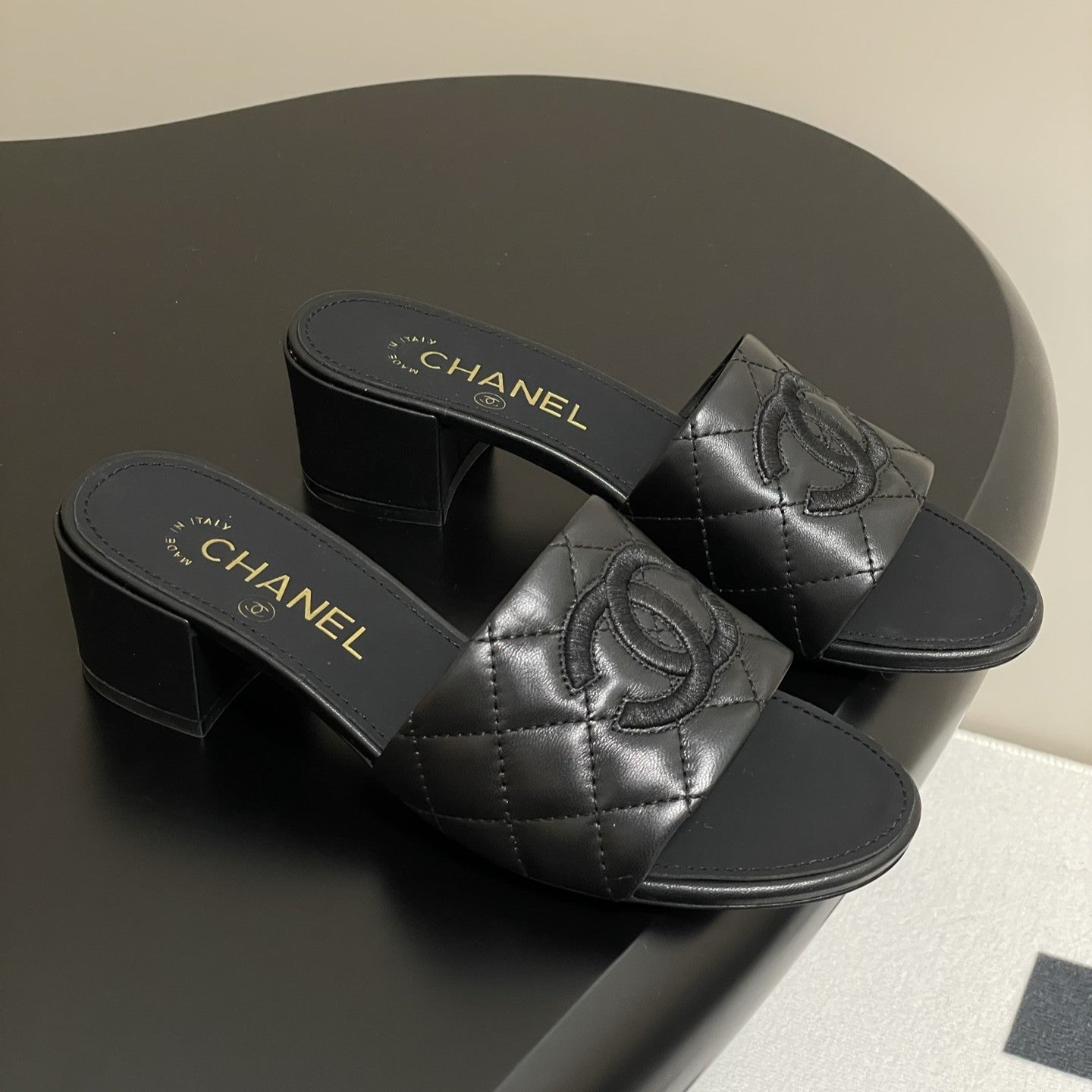 25S Embroidery Double C Mule 15mm Black Lambskin 247582