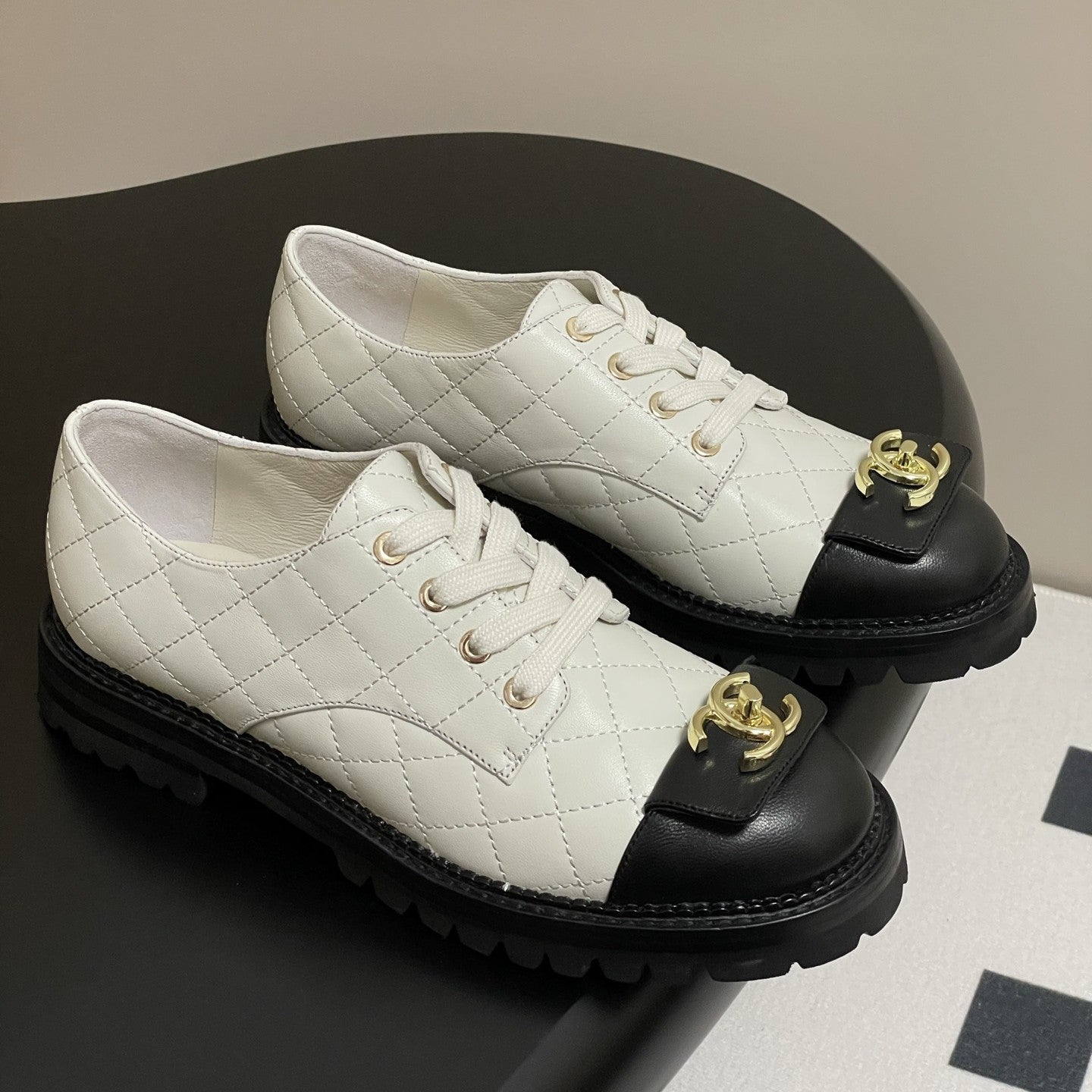 25K Double C Buckle Thick-Soled 25mm Loafer White Black Lambskin 247710