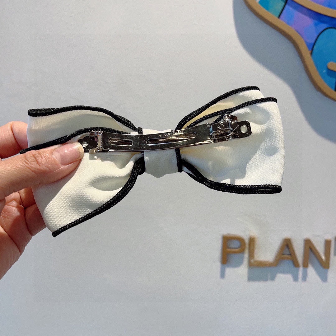 BOW HAIRPIN IN BLACK AND WHITE TRIM COTTON 406022