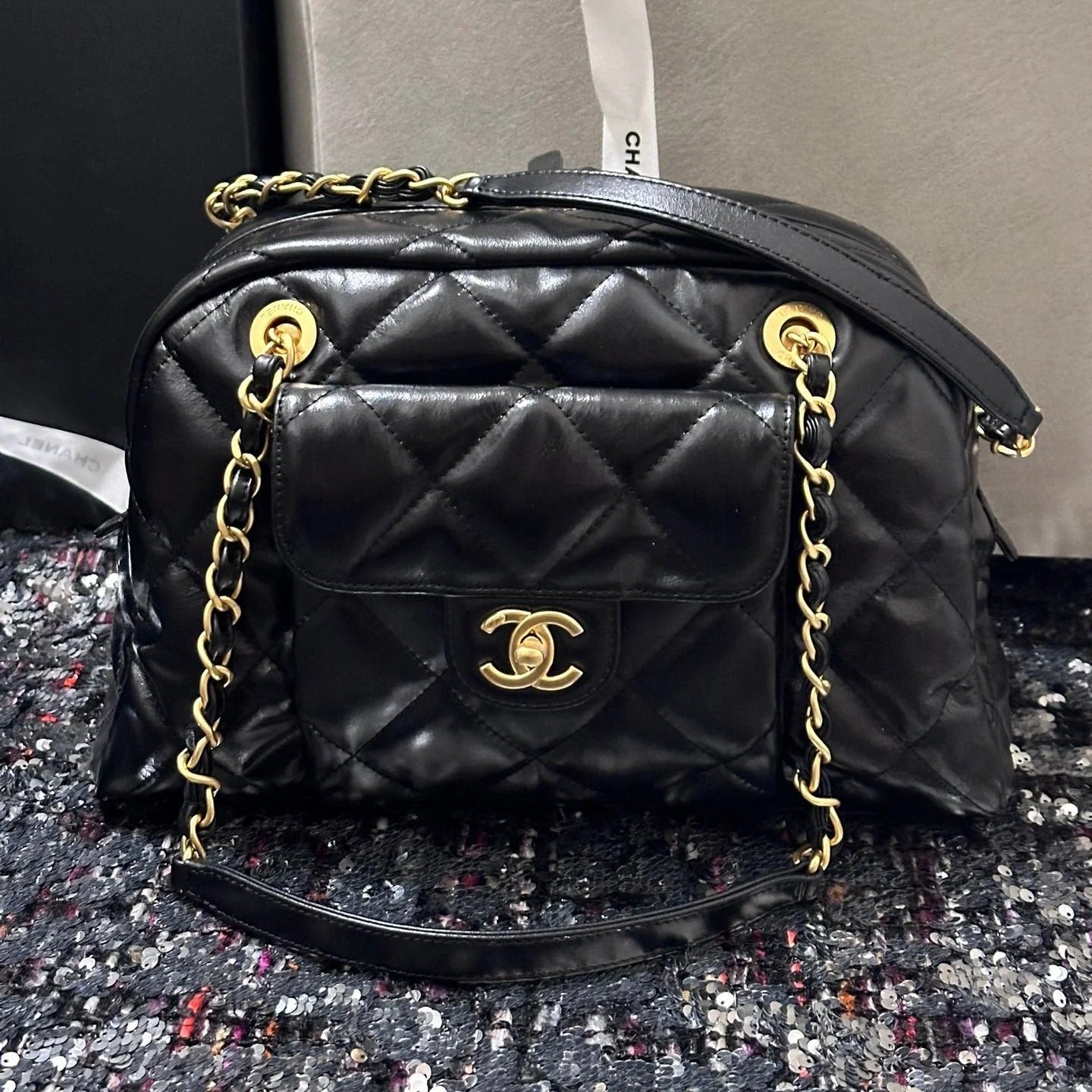 BOWLING BAG 33 IN BLACK SOFT LAMBSKIN GOLD HARDWARE