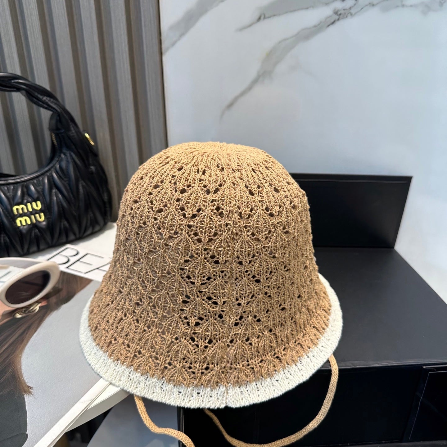 BUCKET HAT MODEL 652270 IN LIGHT BROWN CROCHET