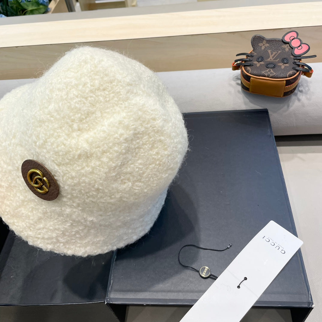 BUCKET HAT IN WHITE WOOL PLUSH 399231
