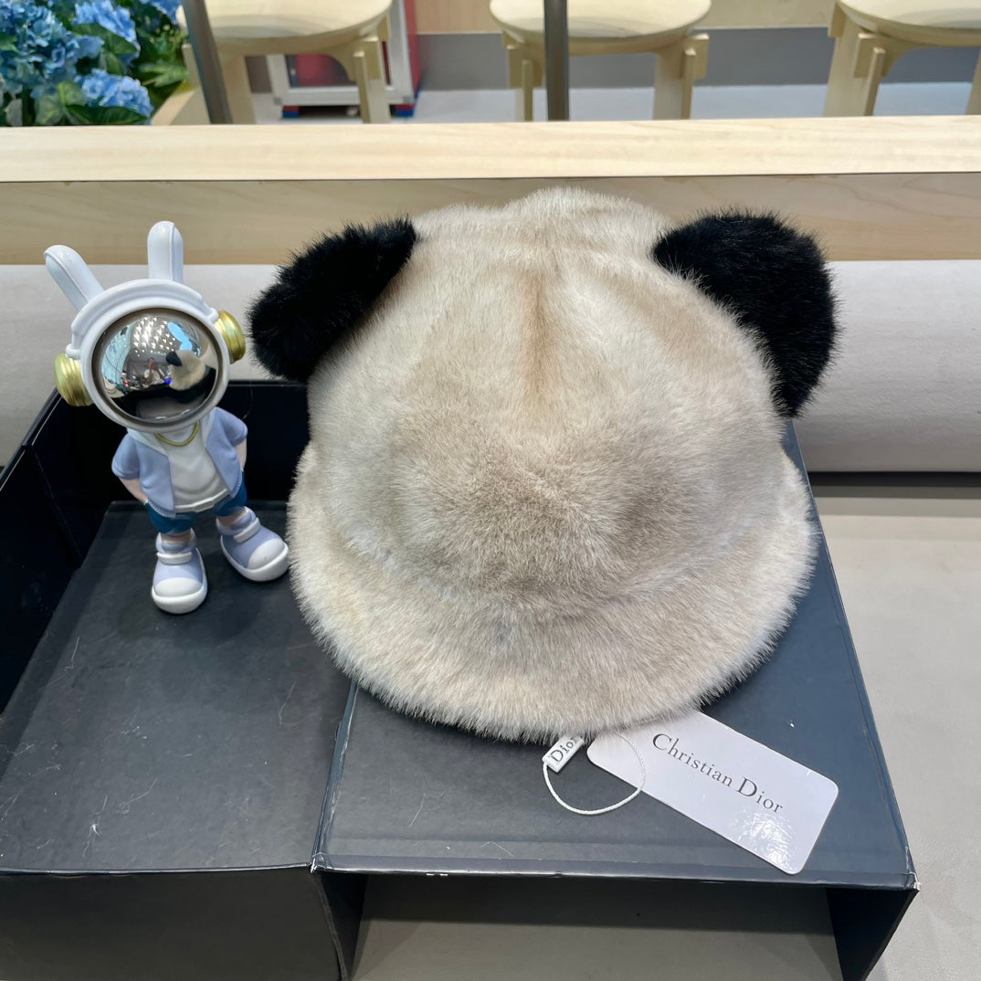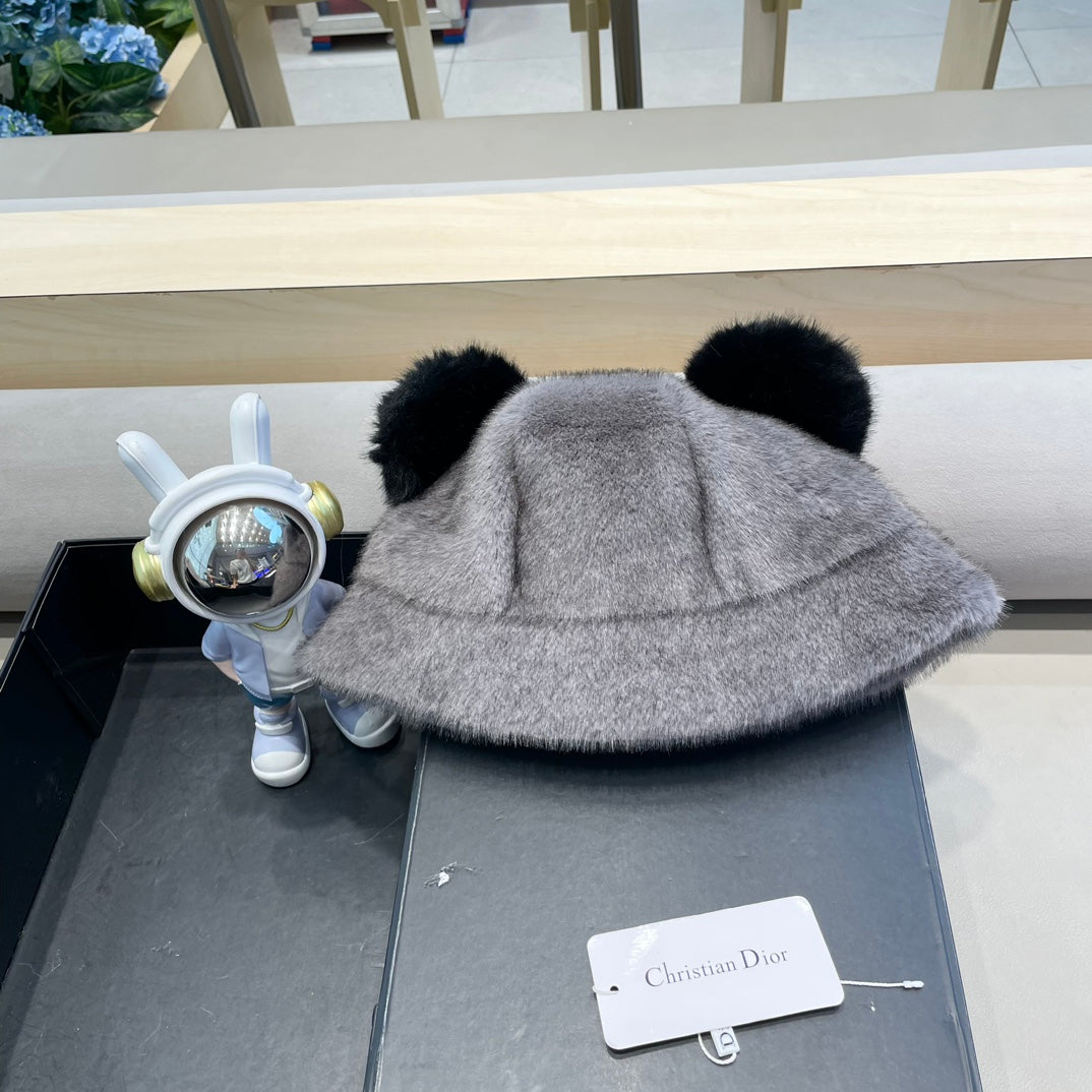 BUCKET HAT WITH CUTE BEAR EARS IN BLACK MINK FUR 422026