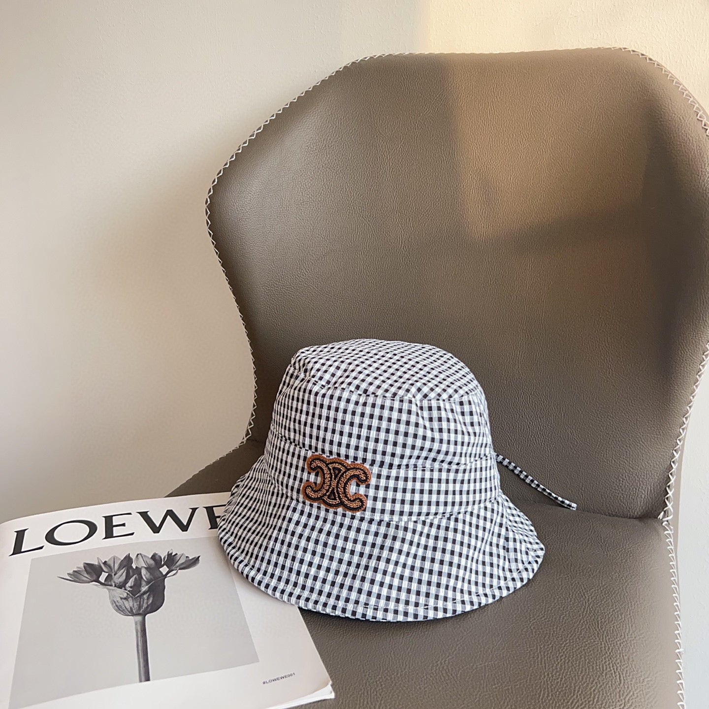 BUCKET HAT MODEL 652077 IN BLACK & WHITE GINGHAM FABRIC