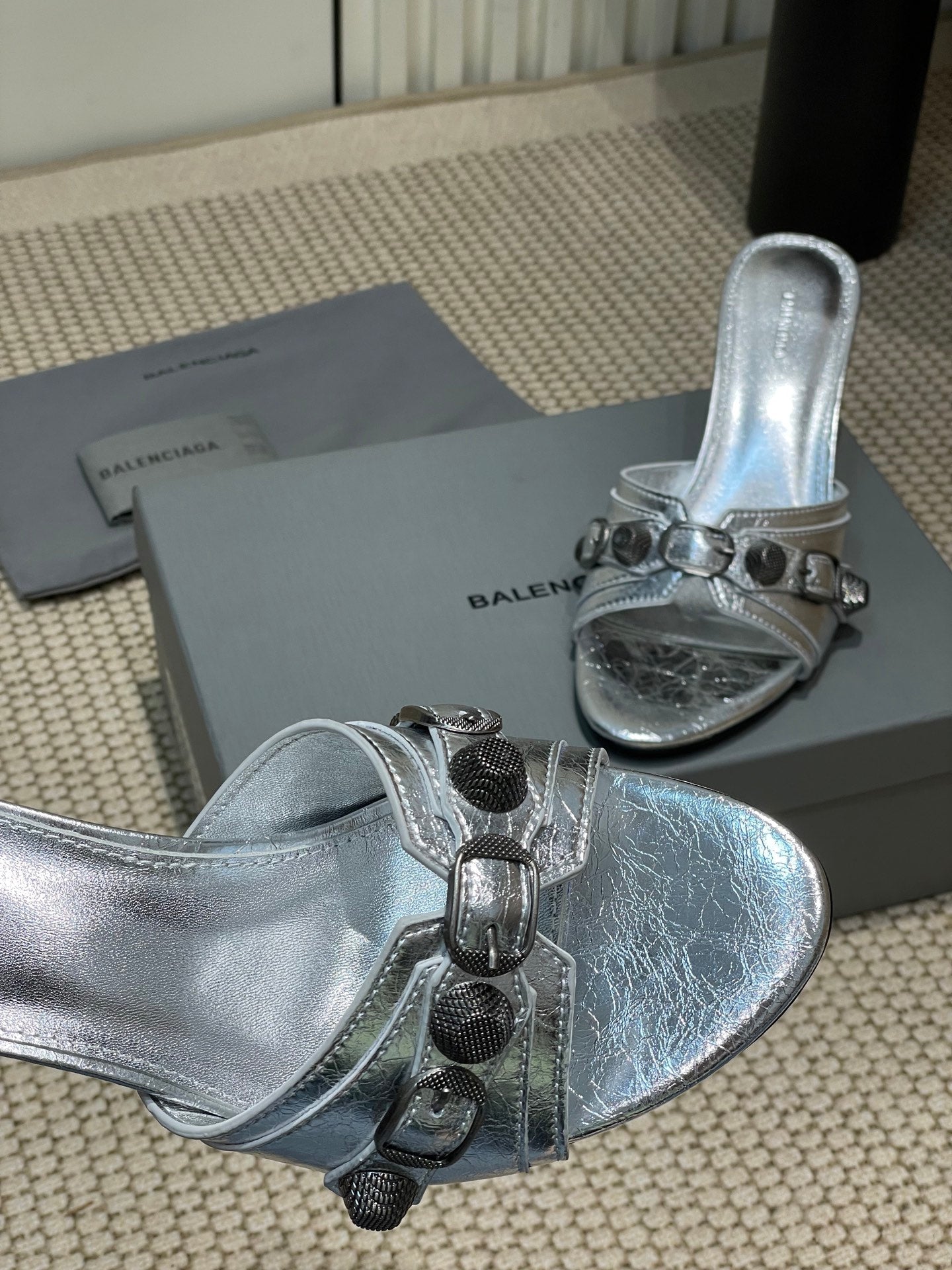 CAGOLE HIGH MULES IN SILVER OIL-WAX SHEEPSKIN
