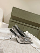 CAGOLE HIGH SLINGBACK IN SILVER GLOSSY CALFSKIN