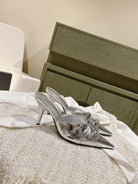 CAGOLE POINTED HIGH MULES IN SILVER SHINY CALFSKIN