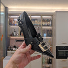 HIGH PUMPS WITH B SILVER BUCKLE IN BLACK CROCODILE PATTERN CALFSKIN