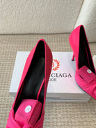 KNIFE CHEMISE HIGH PUMPS IN BRIGHT PINK COTTON AND CALFSKIN